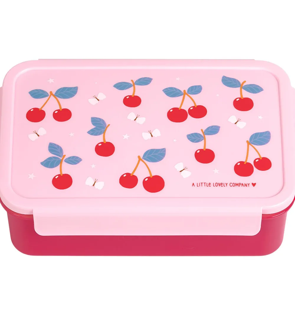 Fin A Little Lovely Company madkasse i rosa nuancer med kirsebærprint.