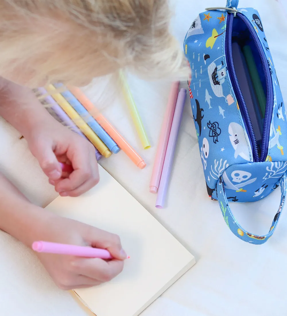 Smart A Little Lovely Company penalhus i blå med piratprint.