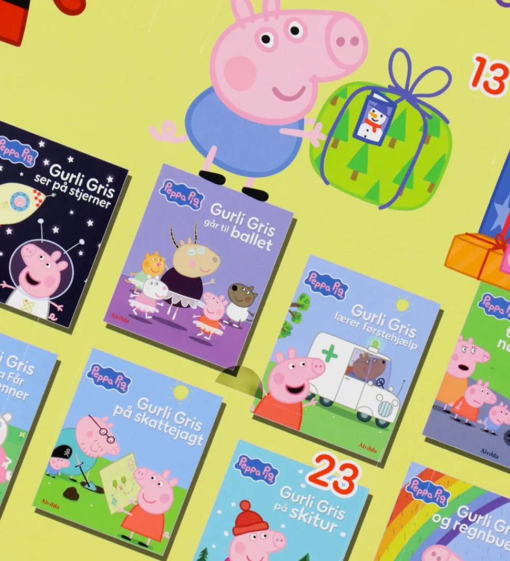 Skøn Alvilda julekalender i samarbejde med Gurli Gris bestående af 24 bøger.