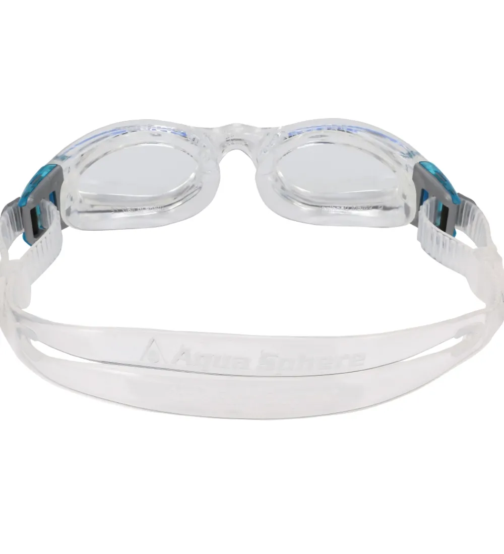 Fine Aqua Sphere svømmebriller i et transparent design med en blå detalje i hver side.