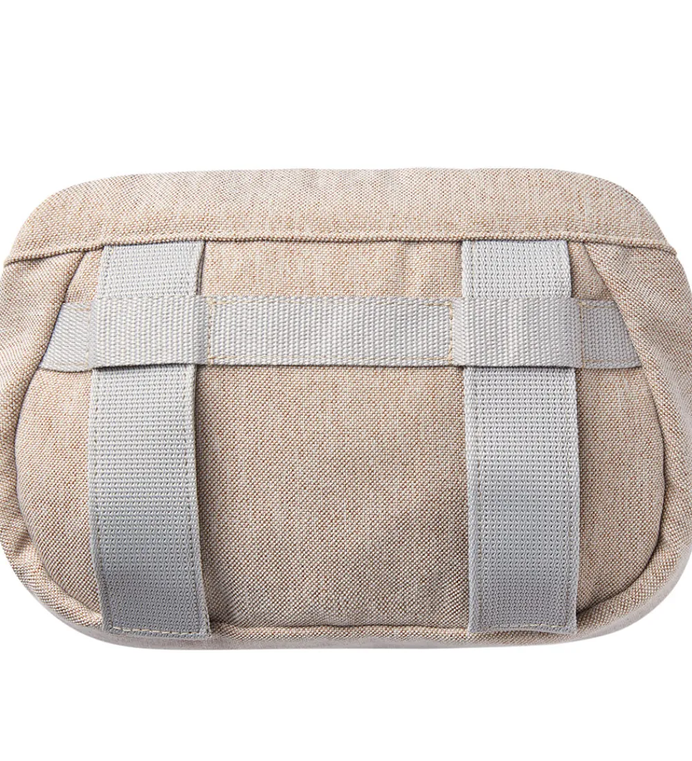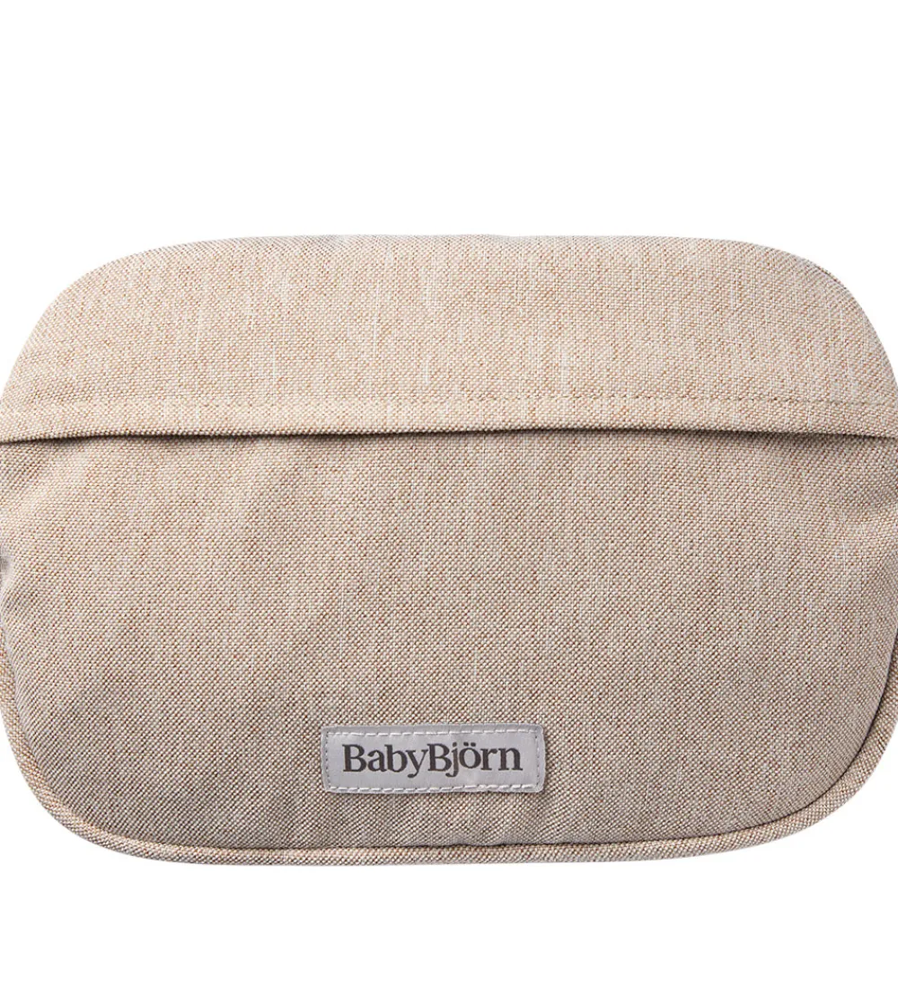 Praktisk BabyBjörn lomme til bæresele i lys beig med vævet struktur.