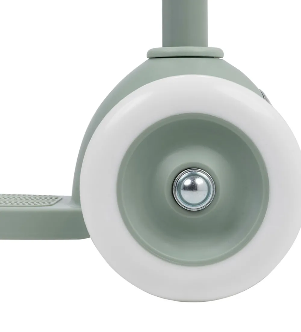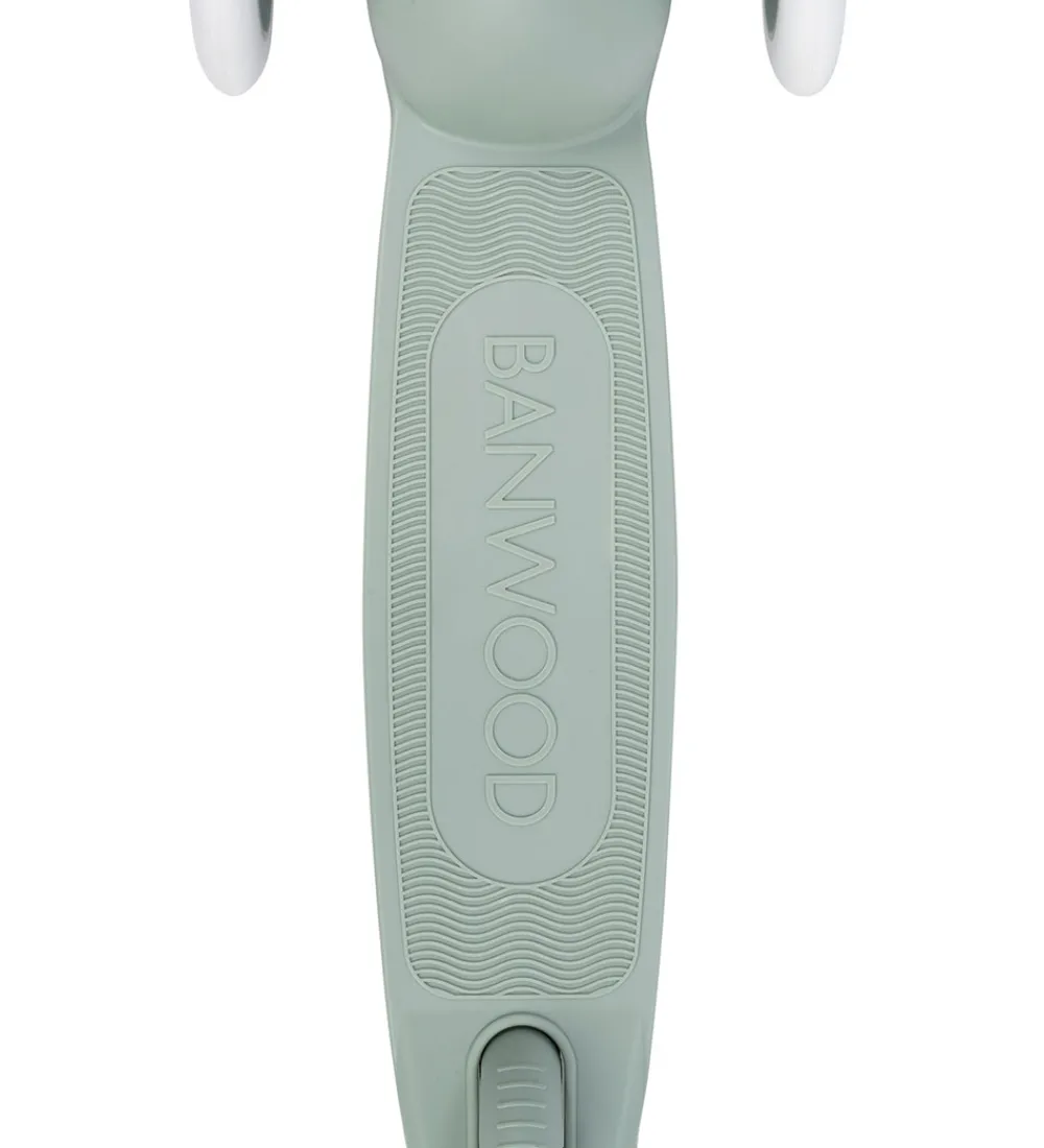 Banwood løbehjulet har to store hjul foran og et lille hjul bagpå med en fodbremse. Det er at styre med Banwoods “Easy Ride Steering System”. Løbehjulet har en bred plade med en praktisk struktur, så barnet står stabilt.