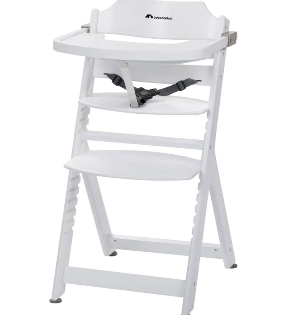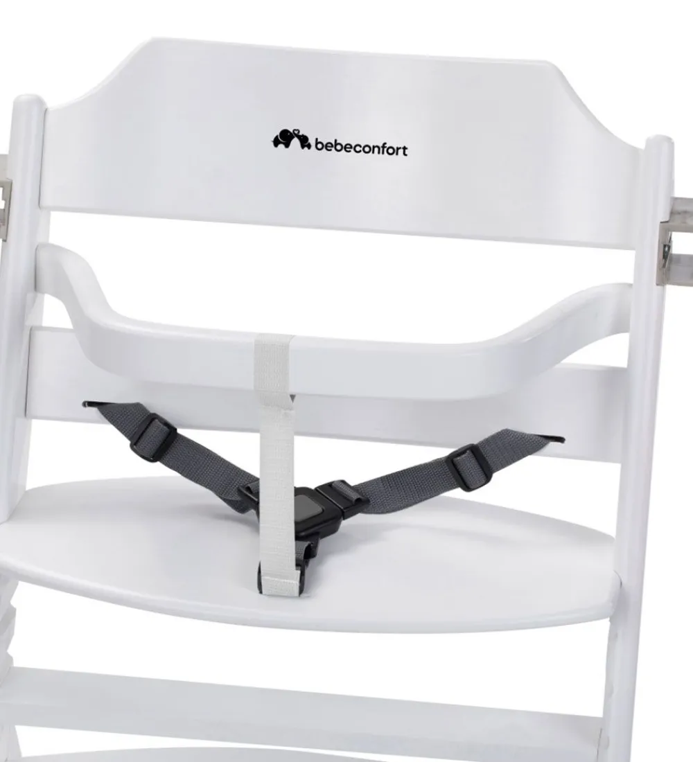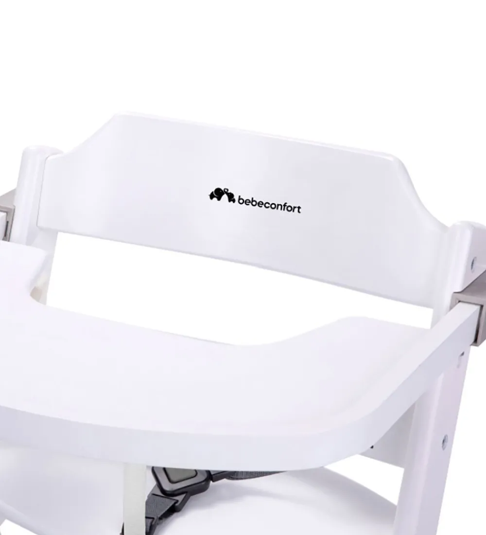 Bebconfort højstolen lader det lille barn sidde med til bords. Den har en sikkerhedsbøje og en rem mellem benene, så barnet sidder trygt med en 3-punktssikring. Stolen har desuden en fodplade, som barnet kan hvile fødderne på, så det kan sidde godt og ergonomisk rigtigt.