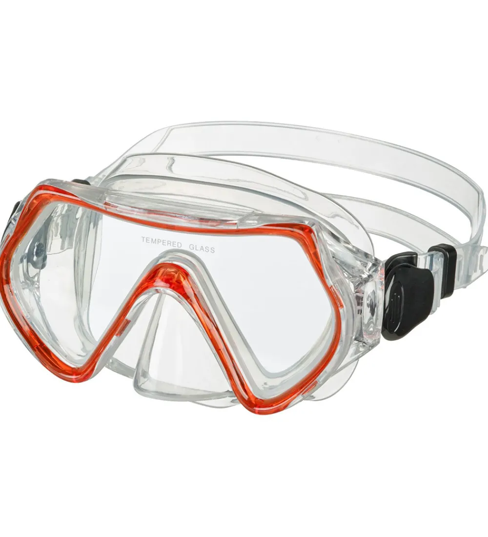 Fin BECO dykkermaske i transparent med en rød kant om glasset.