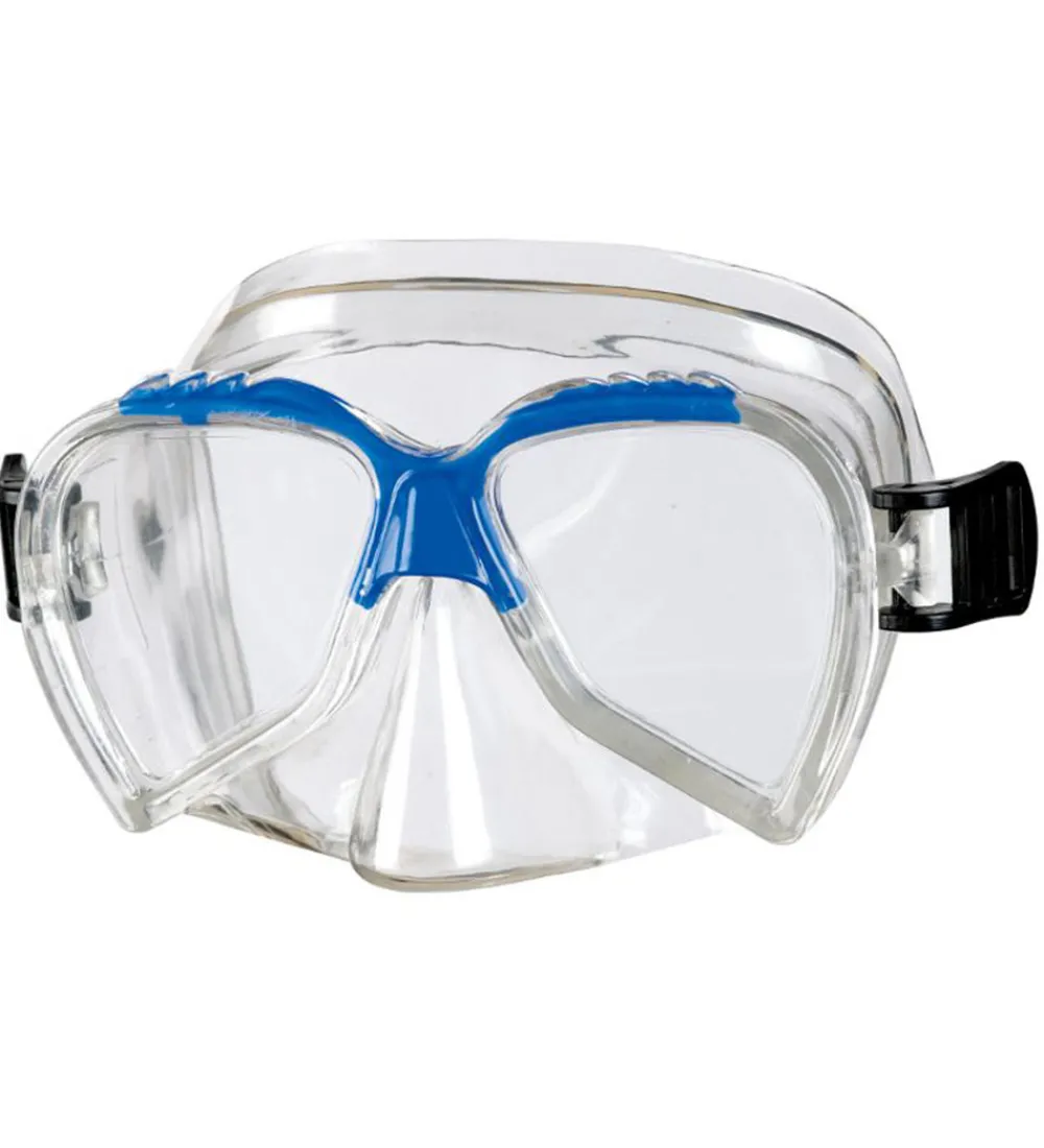 Fin BECO svømmemaske i transparent med en blå detalje på toppen.