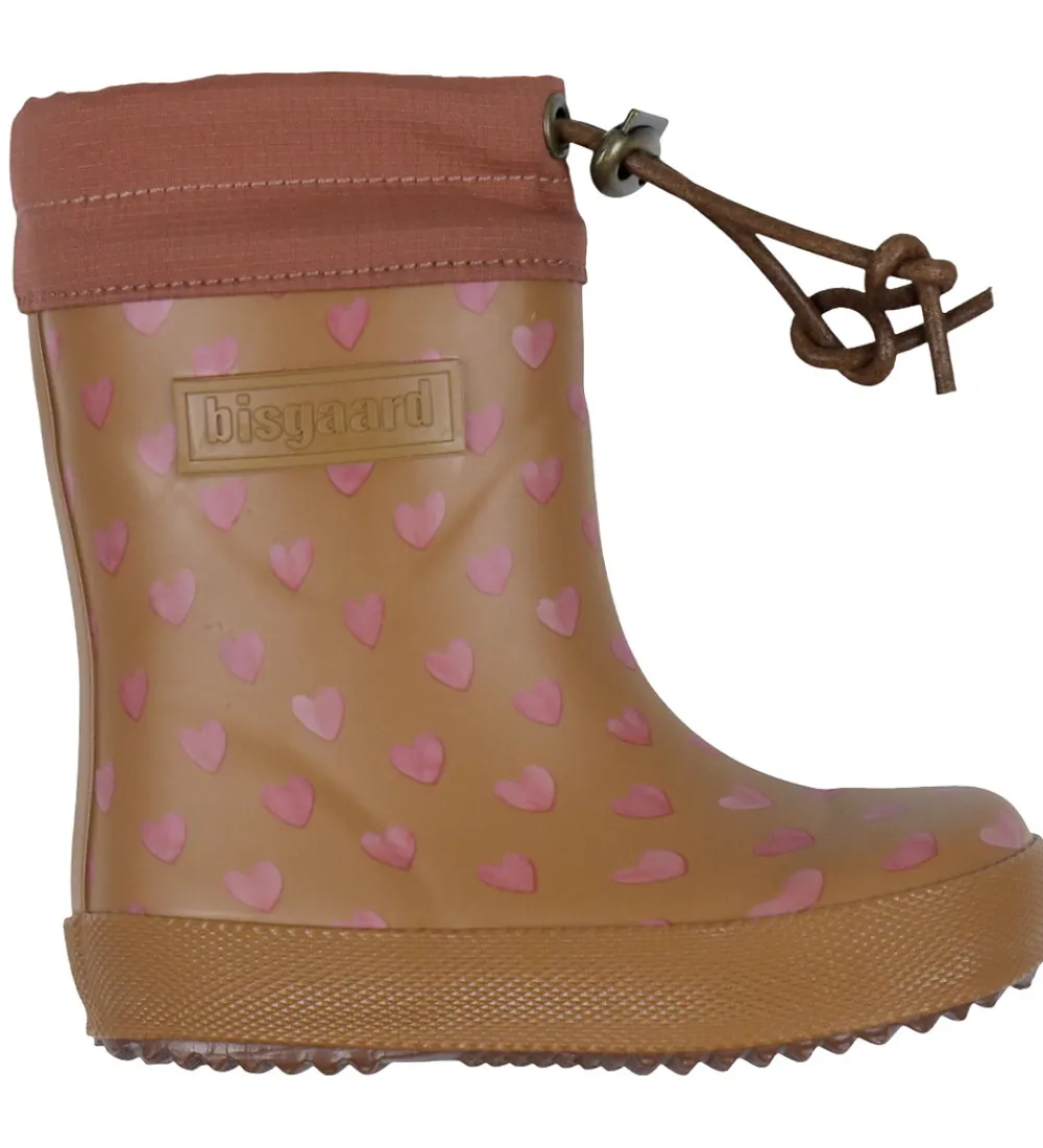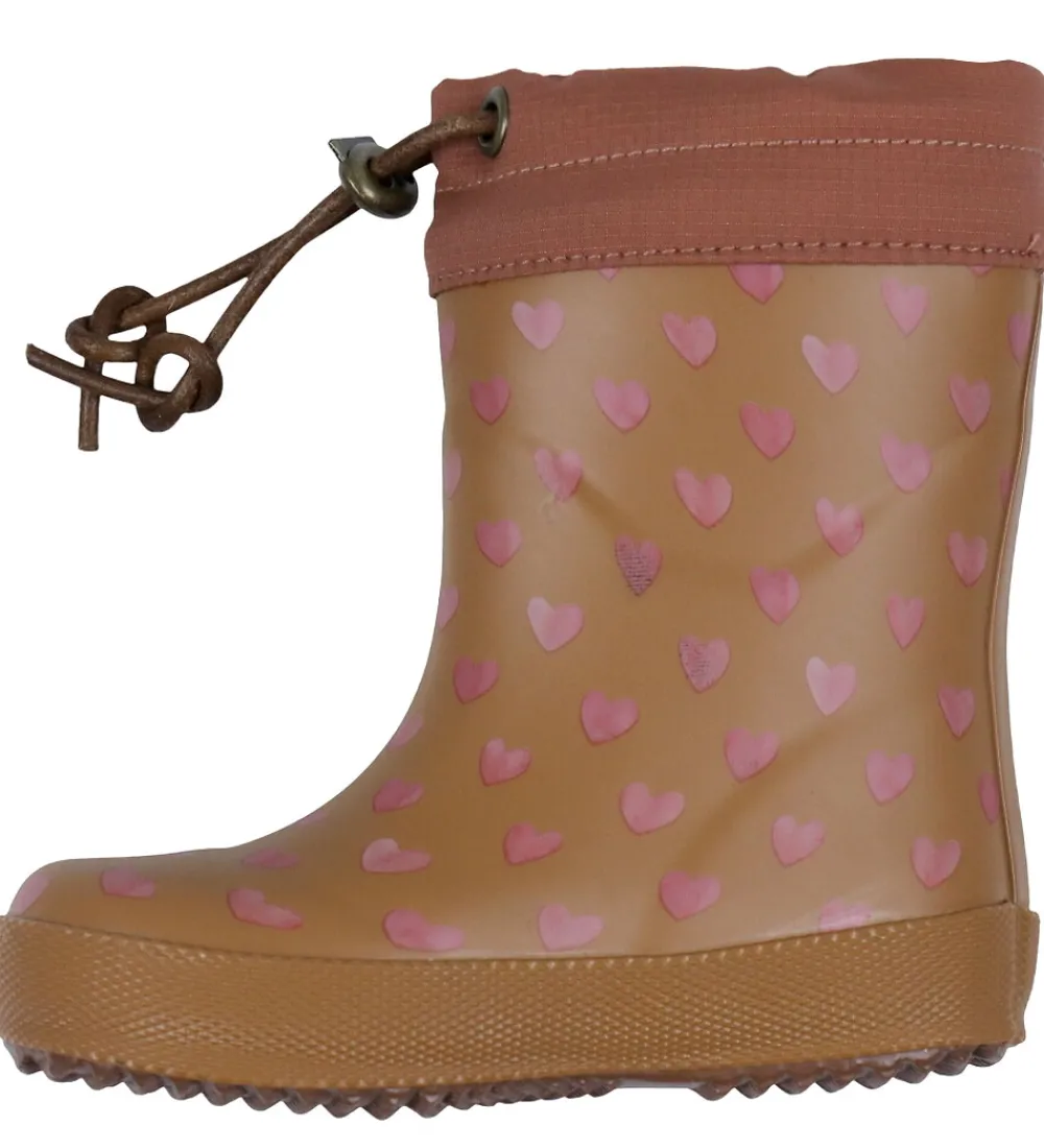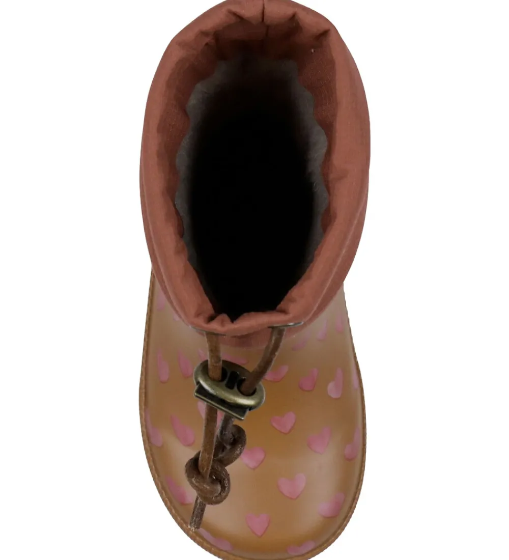 Skønne Bisgaard termostøvler i brun med print af hjerter i rosa.