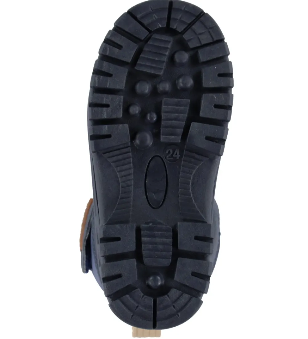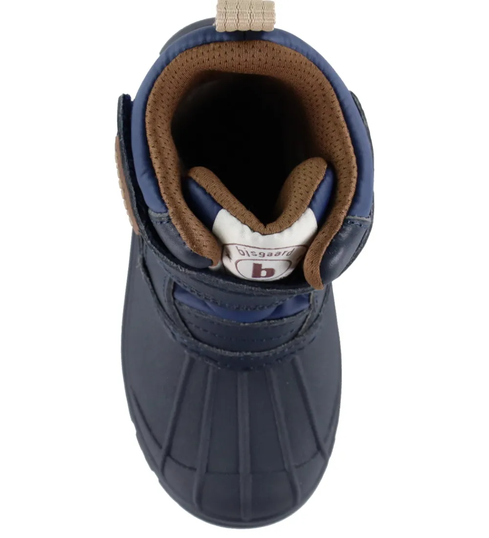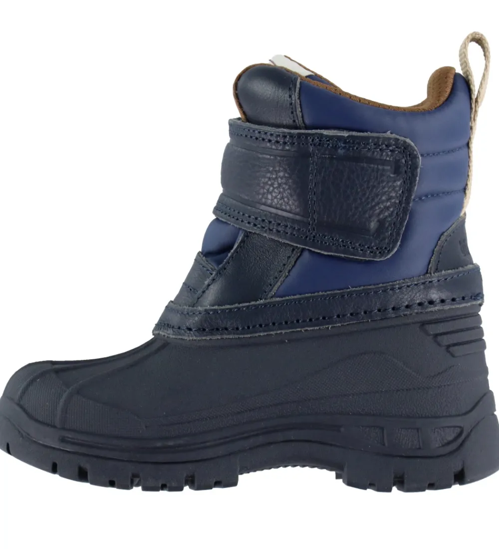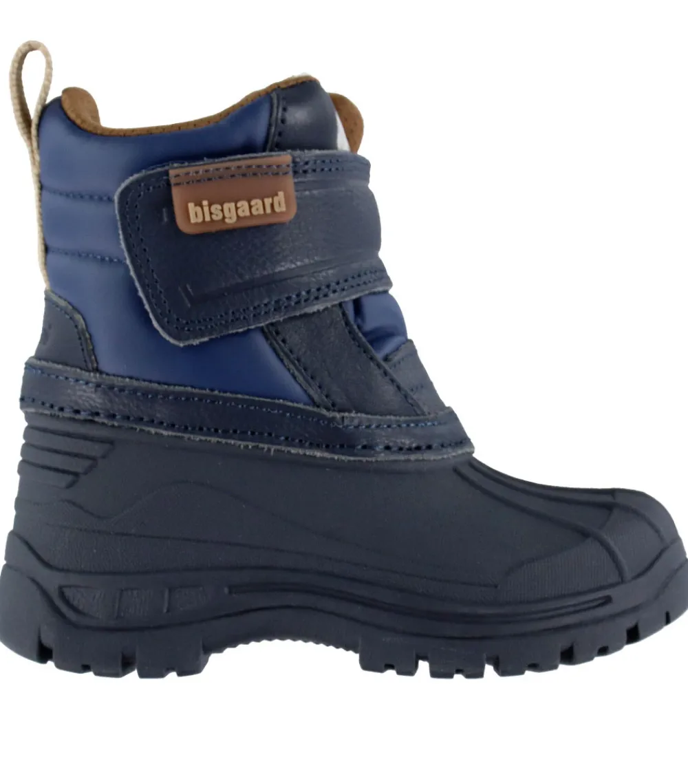 Flotte Bisgaard vinterstøvler i navyblå med gummi nederst og tekstil og læder øverst.