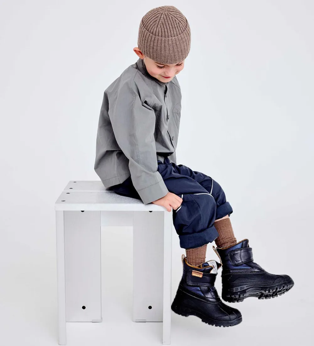 Bisgaard vinterstøvlerne har et mellemhøjt skaft, som går lige over anklen. De lukkes med en bred velcrorem fortil, så de let og hurtigt kan tilpasses til barnets fødder. Bagpå er der en strop, som gør det nemt at få vinterstøvlerne på. Indvendigt er der varmt uldfor og udtagelige indersåler. Vinterstøvlerne har letvægtige ydersåler med et groft skridmønster under bunden, som giver et godt fodfæste.
