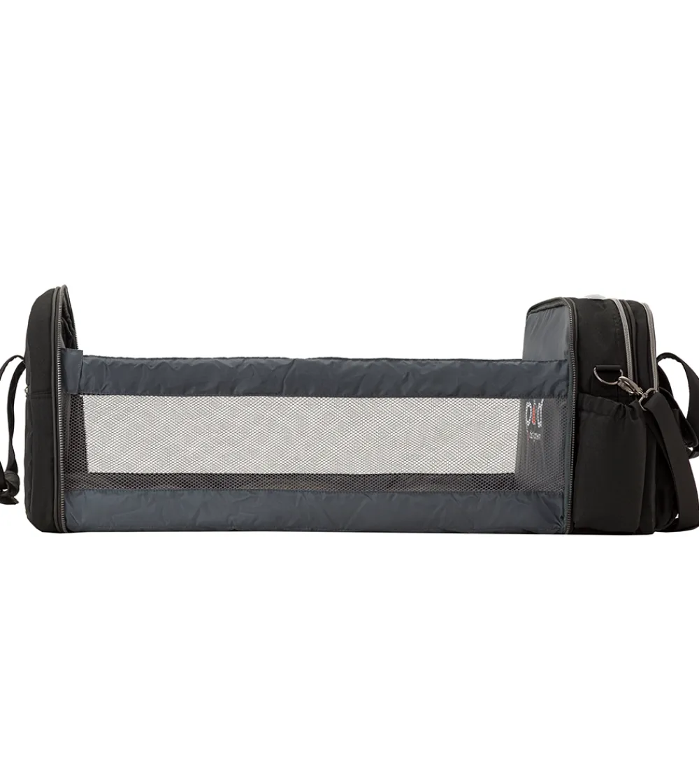 Den kombinerede pusletaske og rejseseng er den perfekte løsning for travle småbørnforældre på farten.