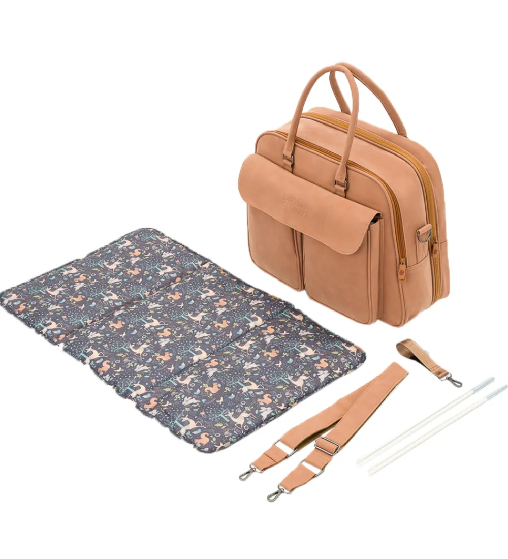Model: Baby Travel Crib Changing Bag – Vegan Leather Porcini – POD, Style: LPOD03, Farve: Porcini