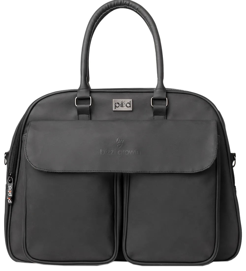 Den kombinerede pusletaske og rejseseng fra Bizzi Growin har en justerbar og aftagelig skulderstrop samt to bærehåndtag, og der medfølger også barnevognsstropper, så den kan fastgøres til barne- eller klapvognen.