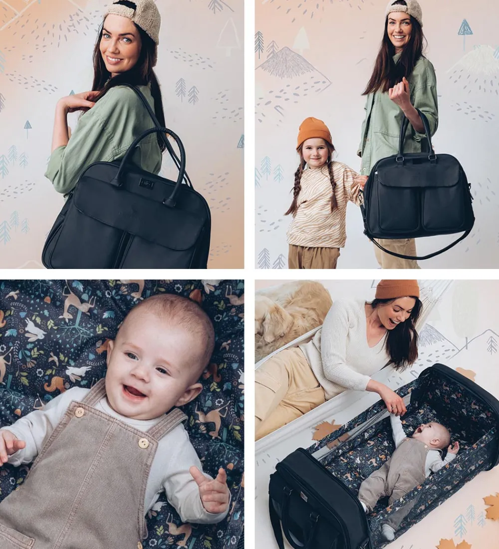 Den kombinerede pusletaske og rejseseng er den perfekte løsning for travle småbørnforældre på farten.
