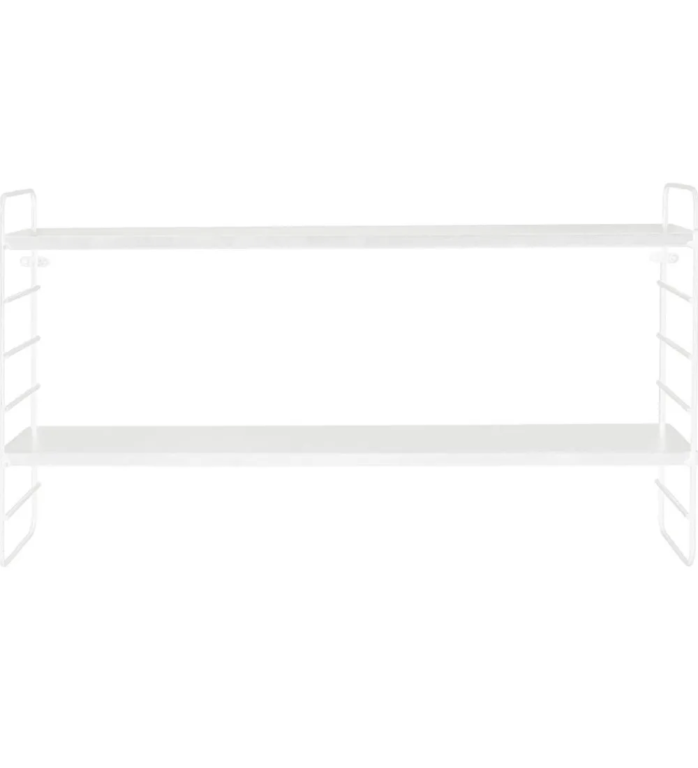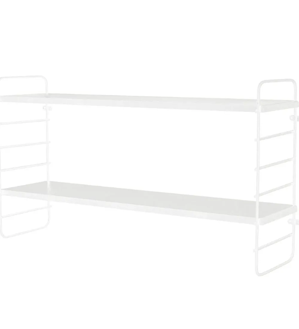 Bloomingville hylden kommer adskilt, og der medfølger både skruer og ravpluks til at hænge den op på væggen med. Hylden har den smarte funktion at man selv kan bestemme afstanden mellem træpladerne, så selv de lidt højere bøger har plads.