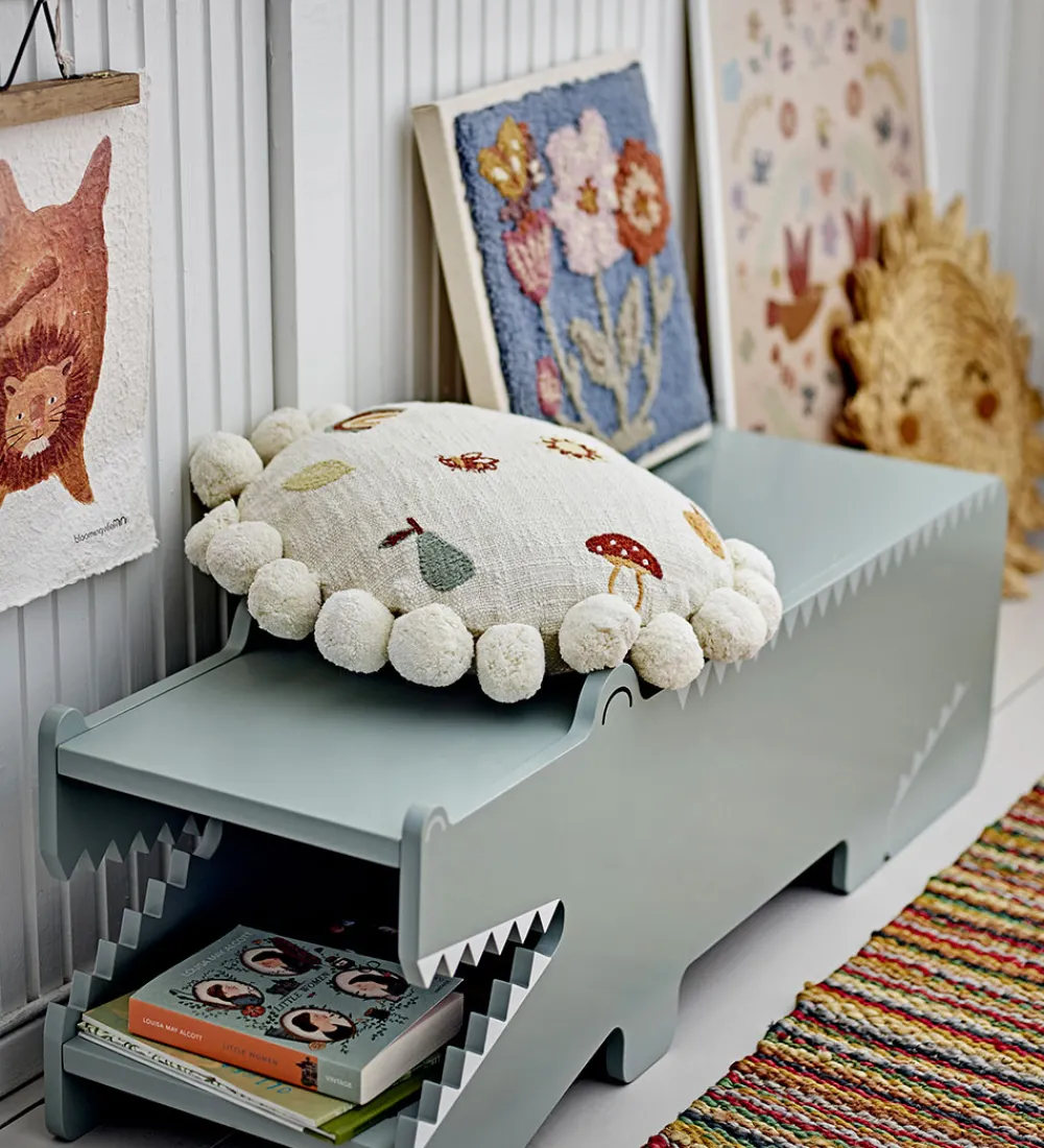 Bloomingville Mini puden er rund, og betrækket kan lynes af, så det kan vaskes. Puden pynter på børneværelset, i sofaen eller i legeteltet.