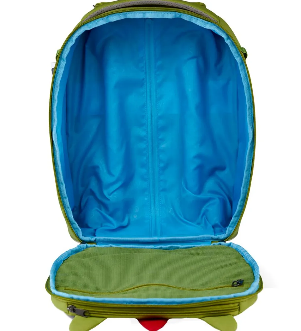 Affenzahn trolleyen består af ét stort rum med en praktisk lynlåslomme på indersiden. Trolleyen åbnes med en dobbelt lynlås. Fortil er der en lomme, formet efter dragens hoved, og i siderne er der åbne lommer i nettet polyester.
