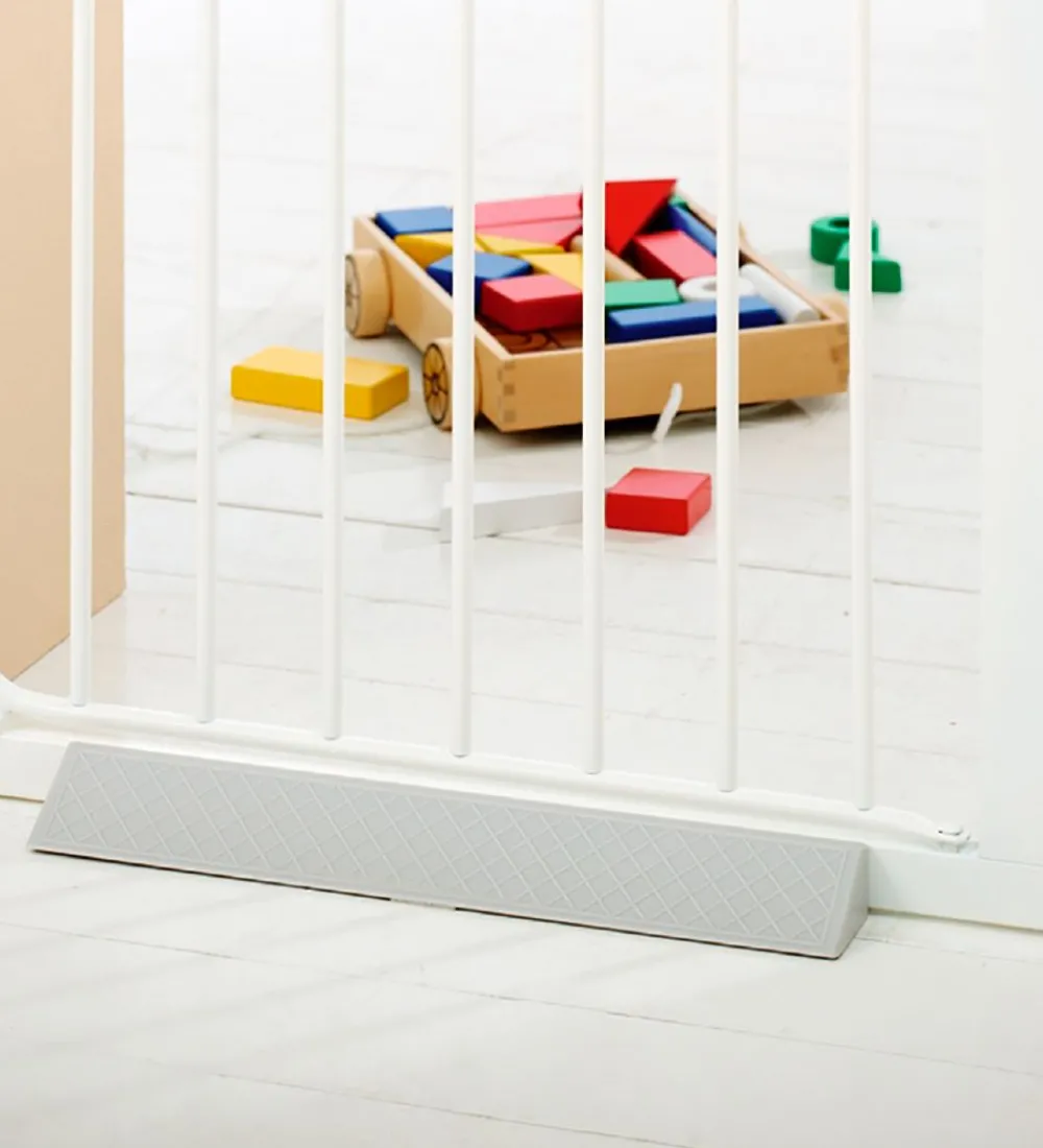 Praktiske BabyDan fodplader til sikkerhedsgitter i grå.