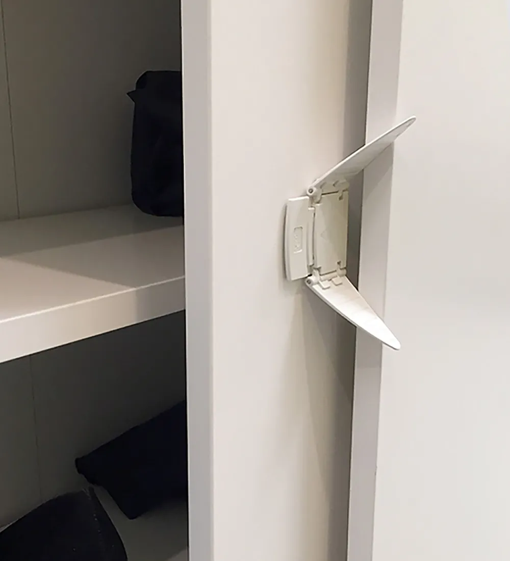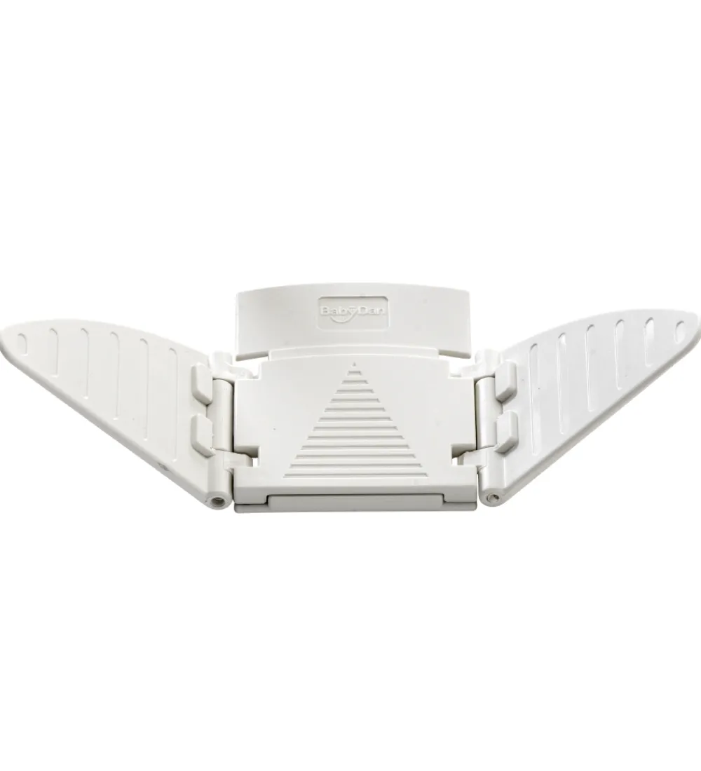 BabyDan skydedørslåsen forhindrer små børn i at skubbe til en skydedør. Låsen sættes fast på skydedøren med selvklæbende tape, og vingerne forhindrer, at skydedøren kan bevæge sig. Låsen kan betjenes med én hånd, og den kan let slås fra efter behov.