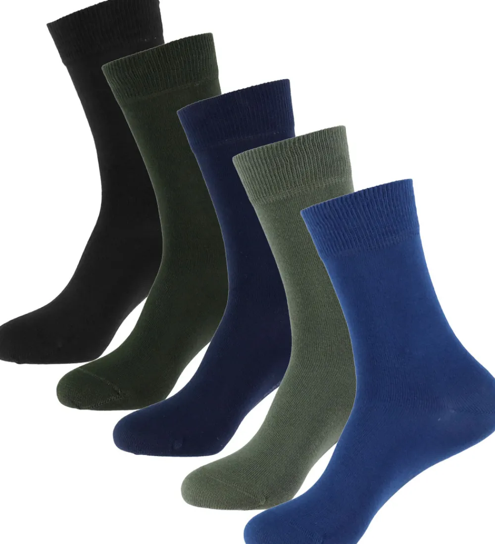 Praktiske Björn Borg strømper solgt i en 5-pak med farverne sort, mørkegrøn, navy, olivengrøn og blå.