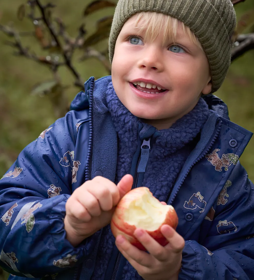 CeLaVi fleecejakken har en høj hals og lange ærmer. Den åbnes fortil ved hjælp af en lynlås med hagebeskytter og indvendig stolpe. Fleecejakken er med to åbne forlommer. Indvendigt er den foret med fint fleece.