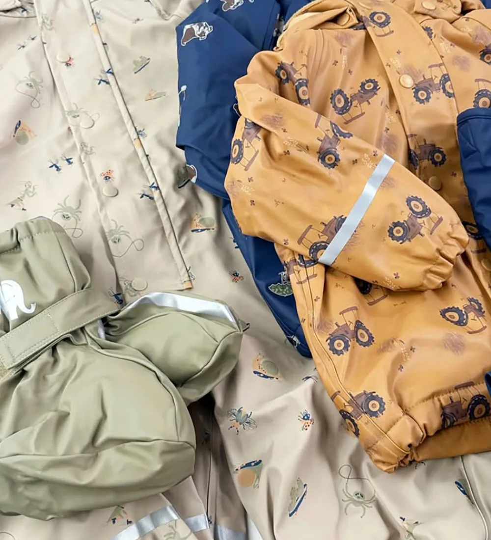 CeLaVi regndragten åbnes fortil med lynlås med hagebeskytter og dobbelt vindstolpe, der lukkes til med trykknapper. Indvendigt er der blødt fleecefor.