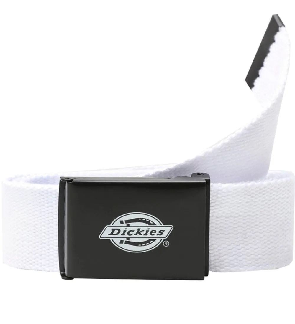 Sejt Dickies bælte i hvid. Bæltespændet er sort med et hvidt logo.