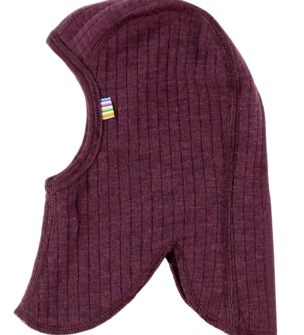 Elegant Joha elefanthue i mørkelilla med ribstruktur. Joha elefanthuen består af to lag og har en rund hovedform med split-effekt i bunden.