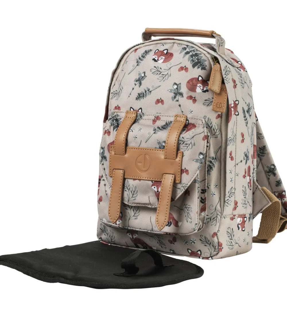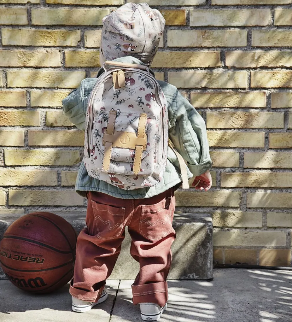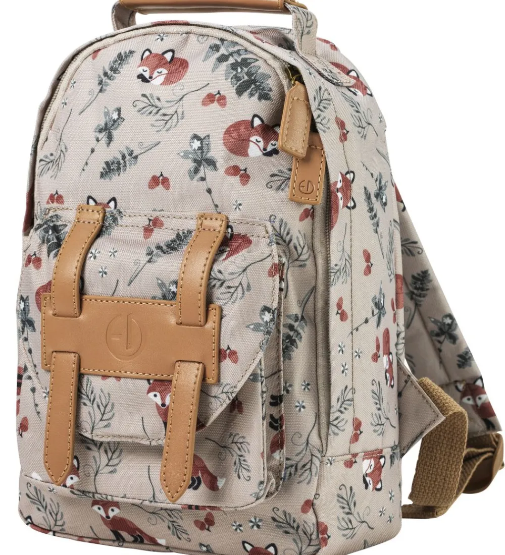 Smart Elodie Details børnehavetaske i lysebrun med print af ræve og planter i flotte farver samt brune læder-detaljer.