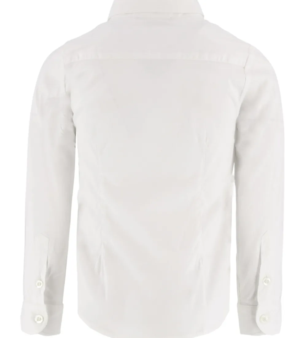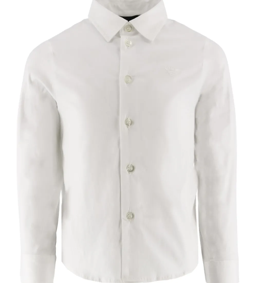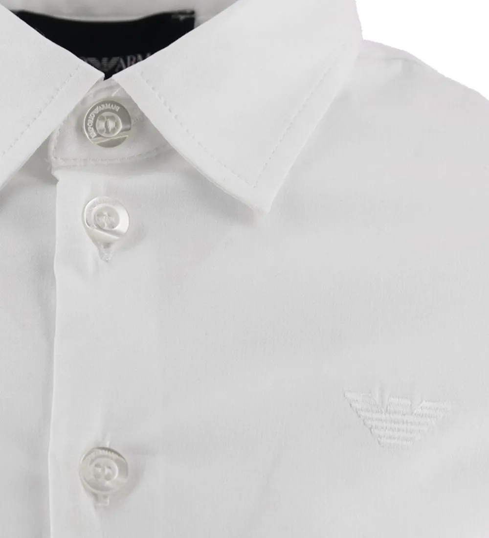 Smart Emporio Armani skjorte i ensfarvet hvid i en let, fastvævet kvalitet, og har Emporio Armanis ikoniske logo på venstre bryst.