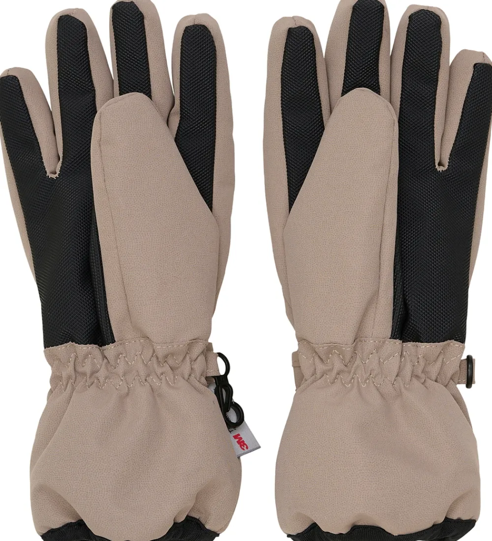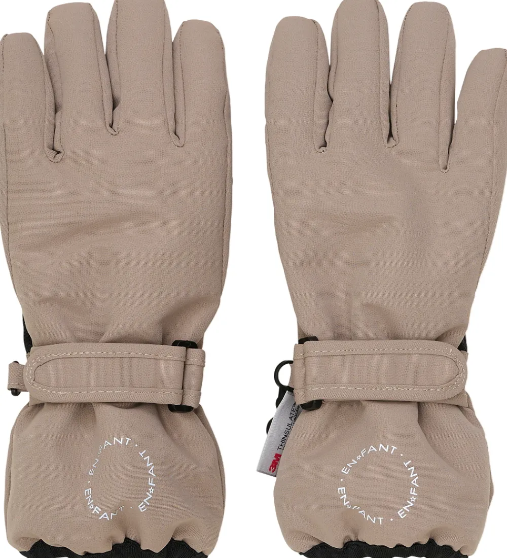 Fine En Fant handsker i beige. Handskerne har refleksprint og sorte detaljer.