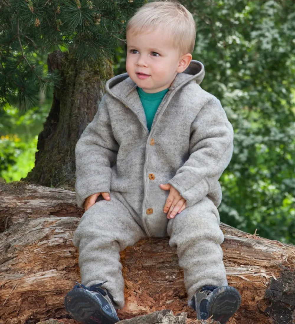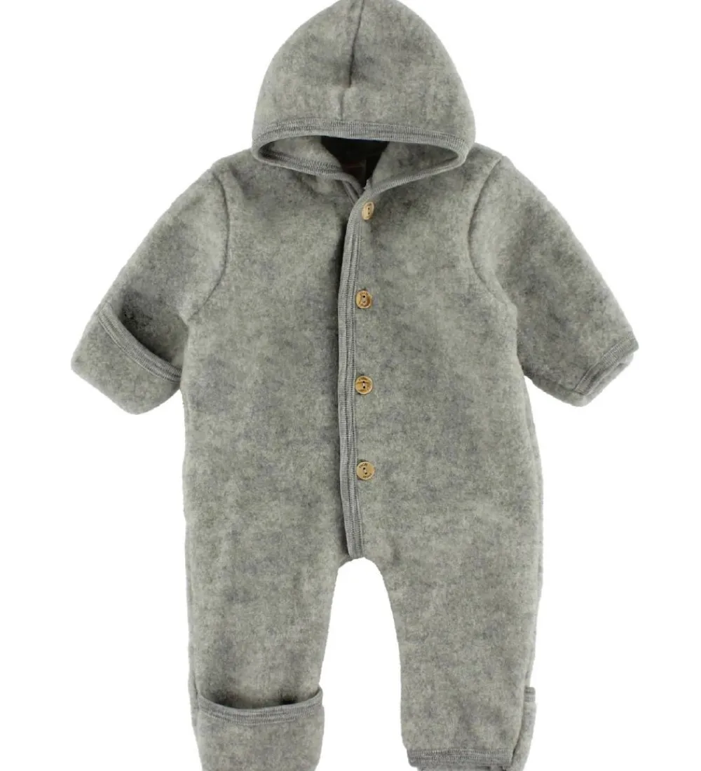 Blød Engel Køredragt med hætte i gråmeleret uld.