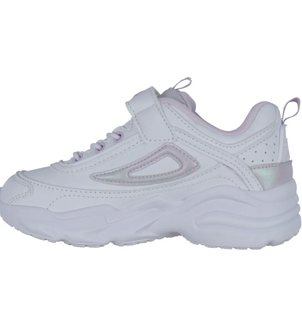 Fine Fila sko i hvidt, imiteret skind med detaljer i lys rosa med perlemorsskær.