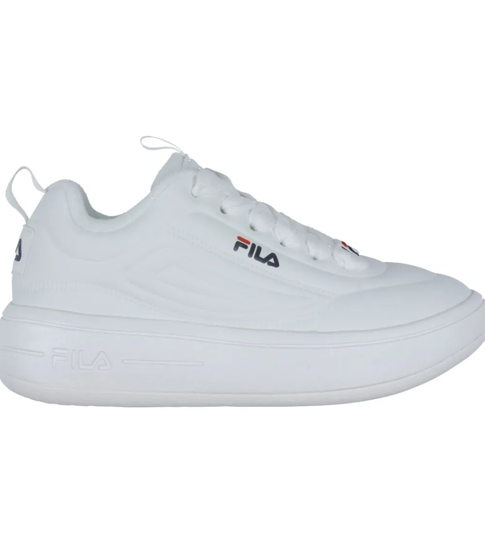Seje Fila sko i ensfarvet hvid med det klassiske Fila-logo på siden, hælen og pløsen.