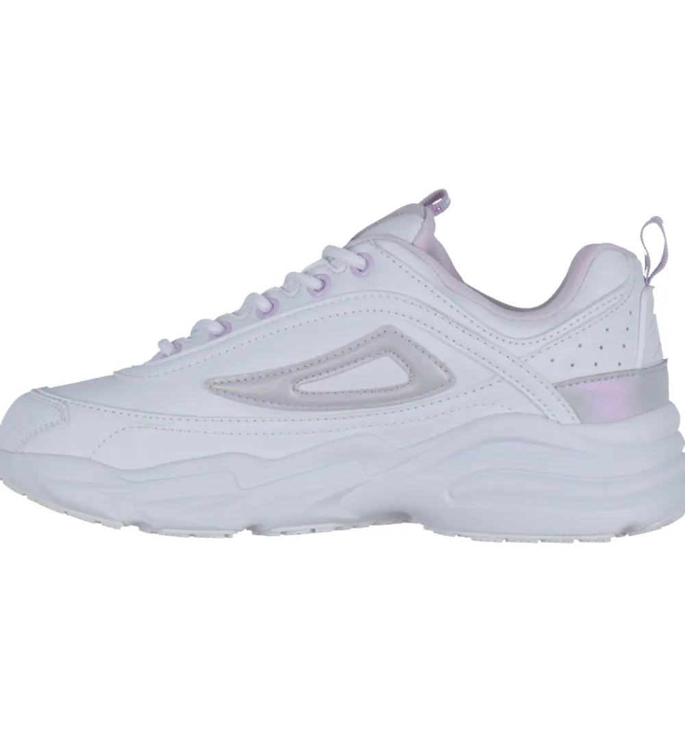 Fine Fila sko i hvidt, imiteret skind med detaljer i lys rosa med perlemorsskær.