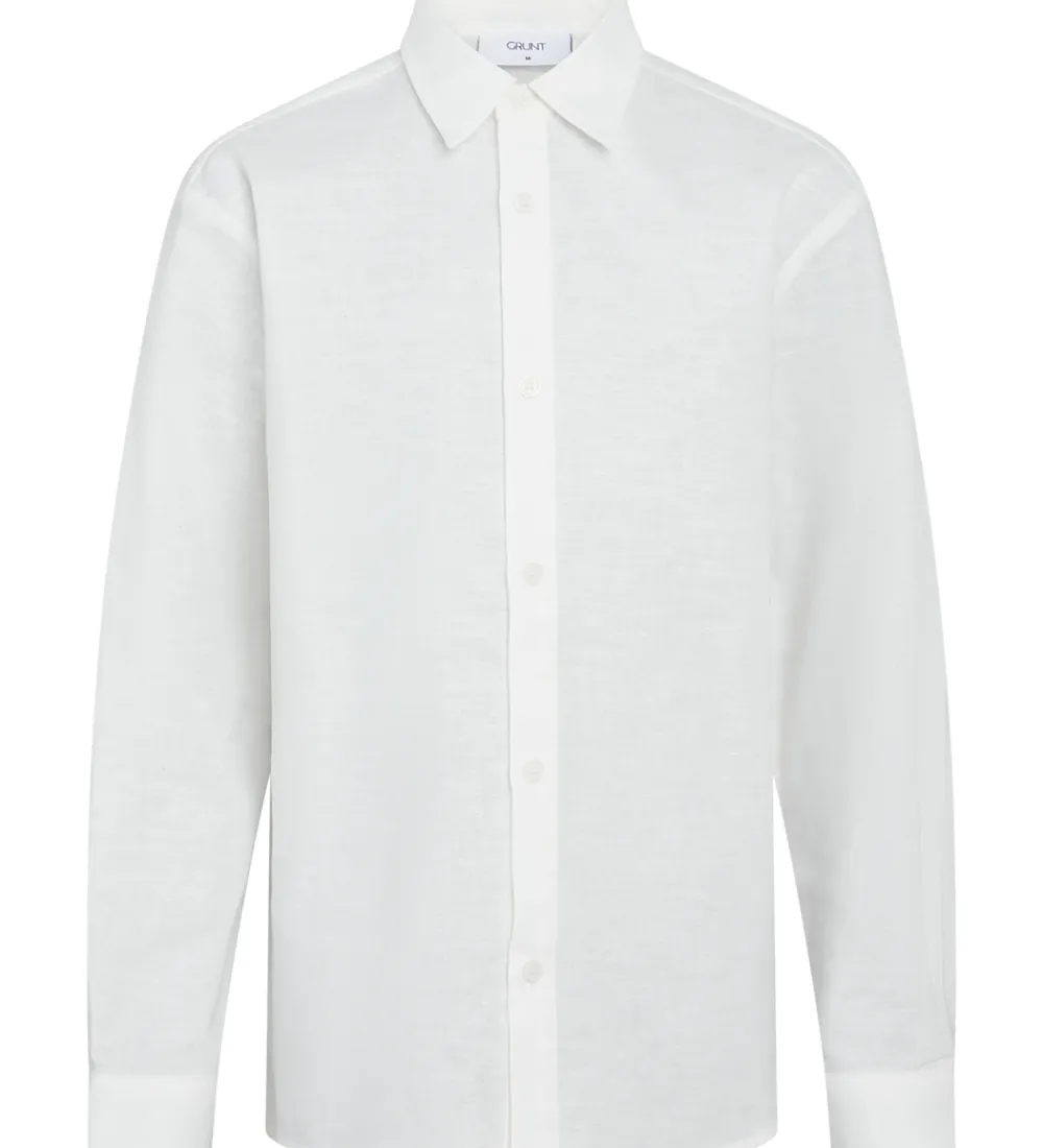 Fin Grunt skjorte i ensfarvet hvid i en lækker blanding af viskose og hør i en fastvævet kvalitet.