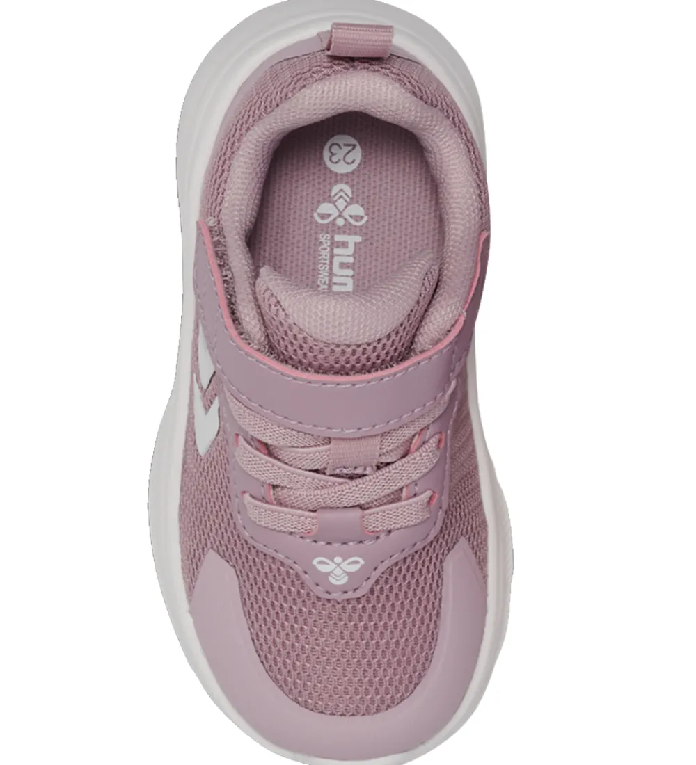 Fine Hummel sko i lyselilla mesh med gummibelægninger. På ydersiden er de karakteristiske vinkler i hvid.