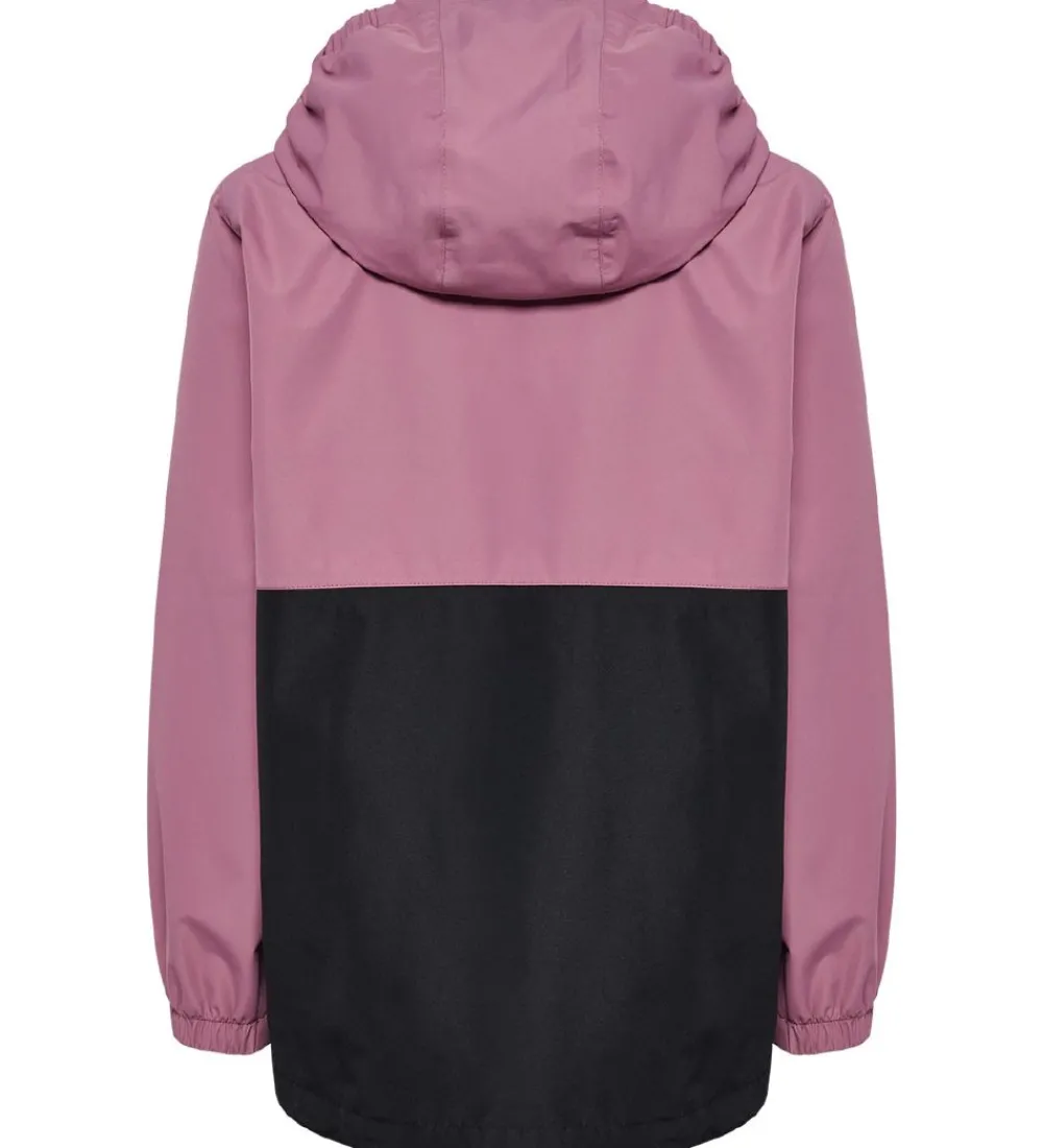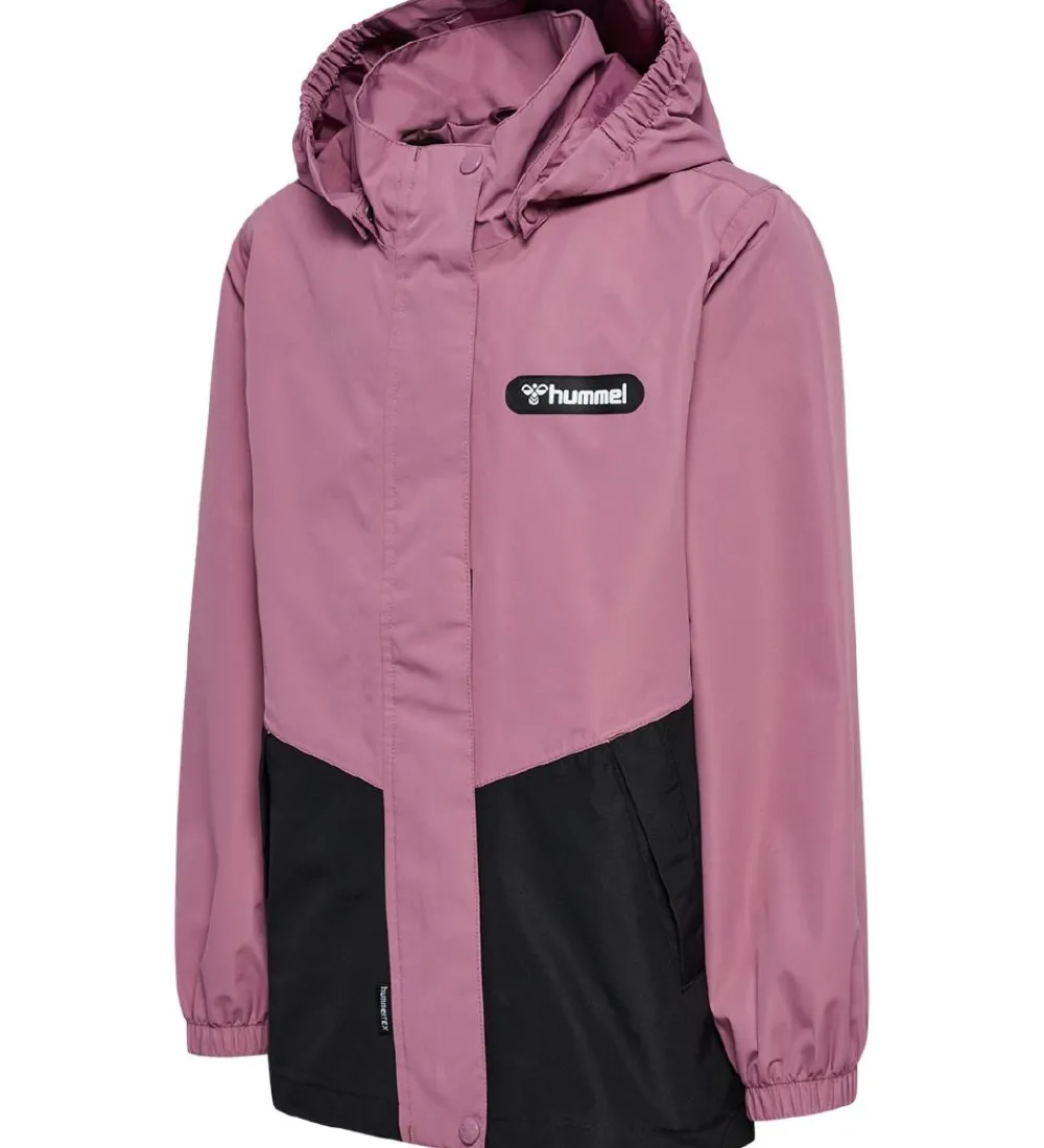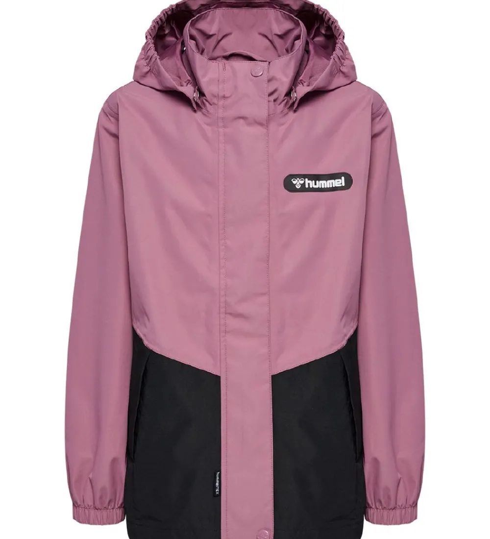 Lækker Hummel sommerjakke i blommelilla og sort med et hvidt og sort logoprint på venstre bryst.