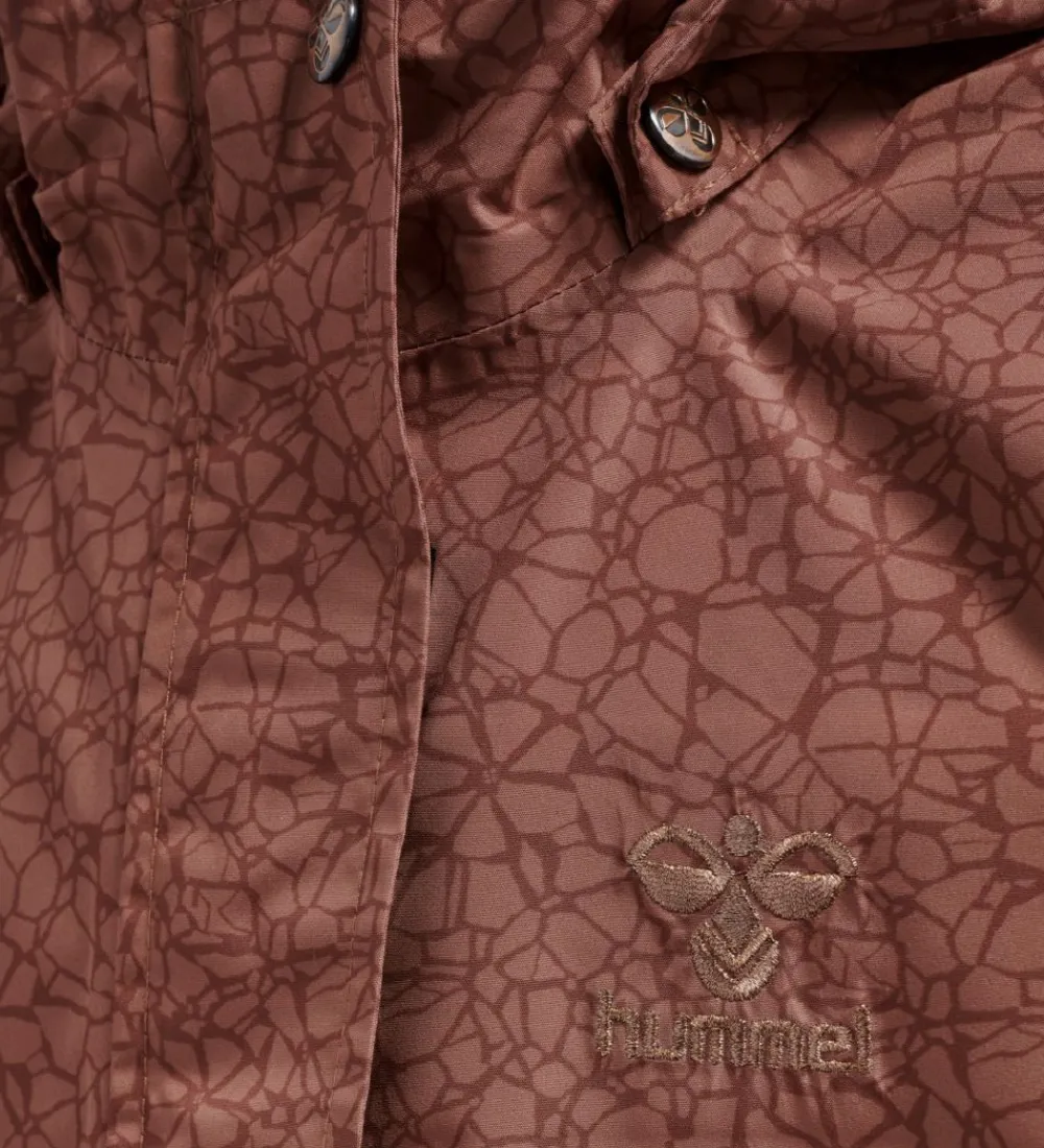 Sej Hummel sommerjakke med et smukt allovermønster af mørke og lyse nuancer af kobberrød. På venstre bryst er der et logo, som er broderet med glimmertråd.