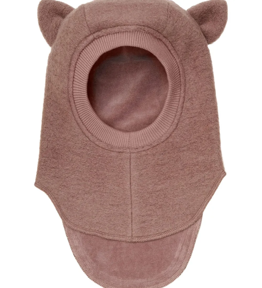 Dejlig Huttelihut elefanthue af lunt uldfleece i en støvet, rosa nuance. Huttelihut elefanthuen har en rund hovedform med små ører og består af to lag, der giver ekstra varme. Elefanthuen har en ribkant, der sikrer en god pasform.