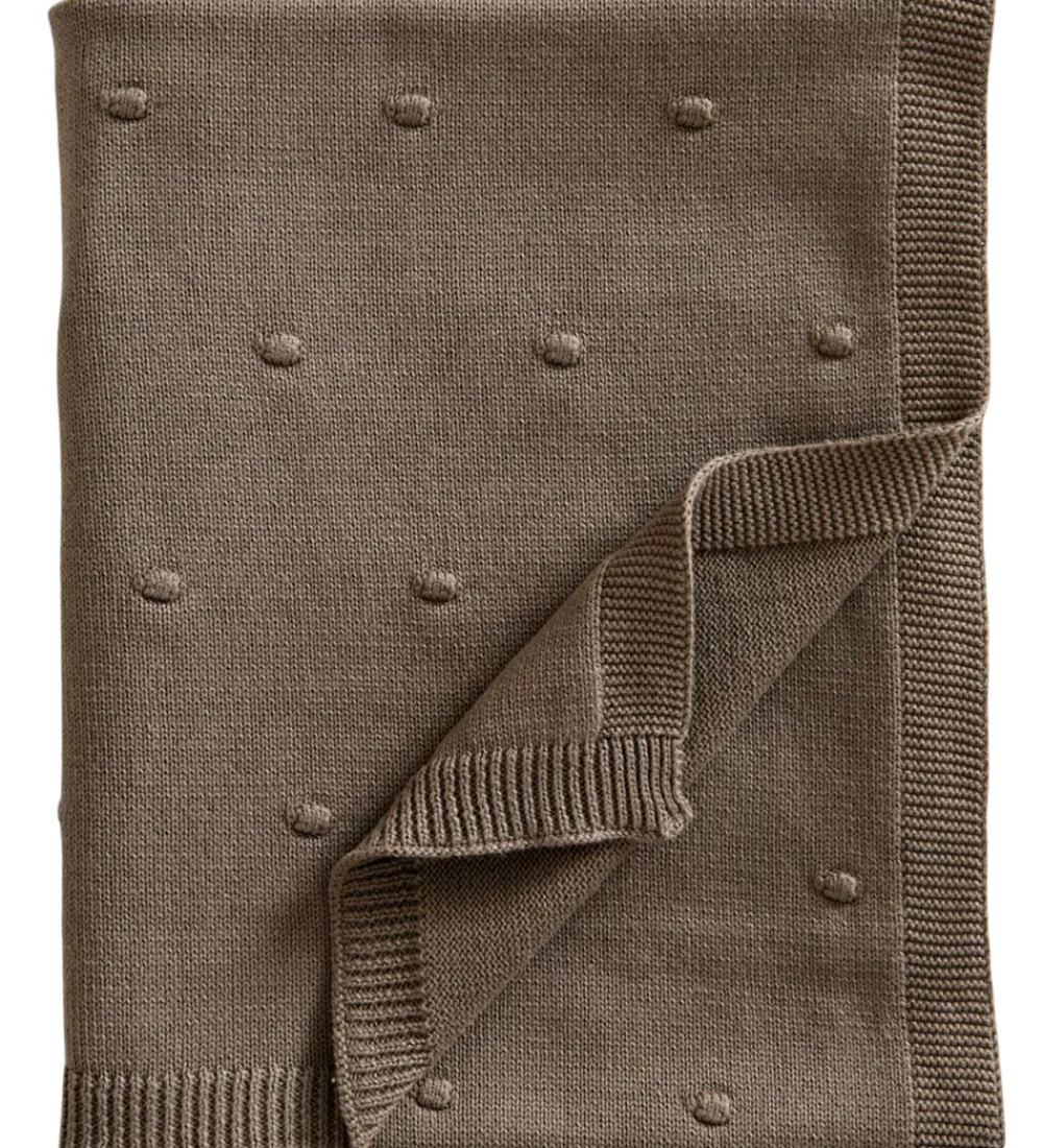 Smukt Jack o Juno tæppe i en brun nuance og strikket med fine boble-knaster som struktur.