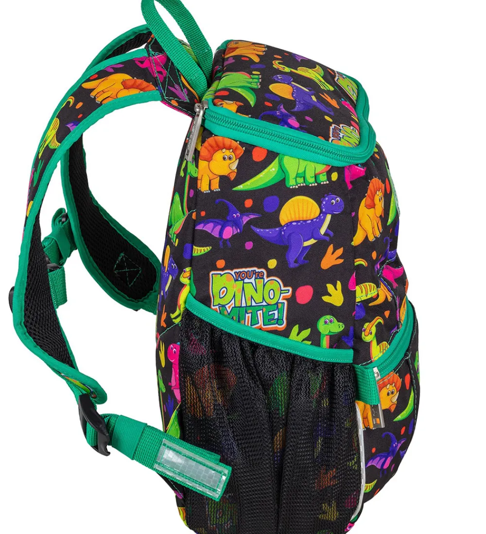 Smart Jeva børnehavetaske i sort med et sjovt dinosaurprint i et væld af farver.