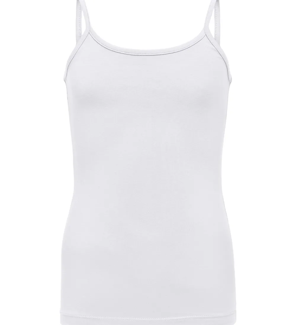Fin Kids Only top i hvid med tynde, justerbare skulderstropper. Toppen har et enkelt design og en tætsiddende pasform.