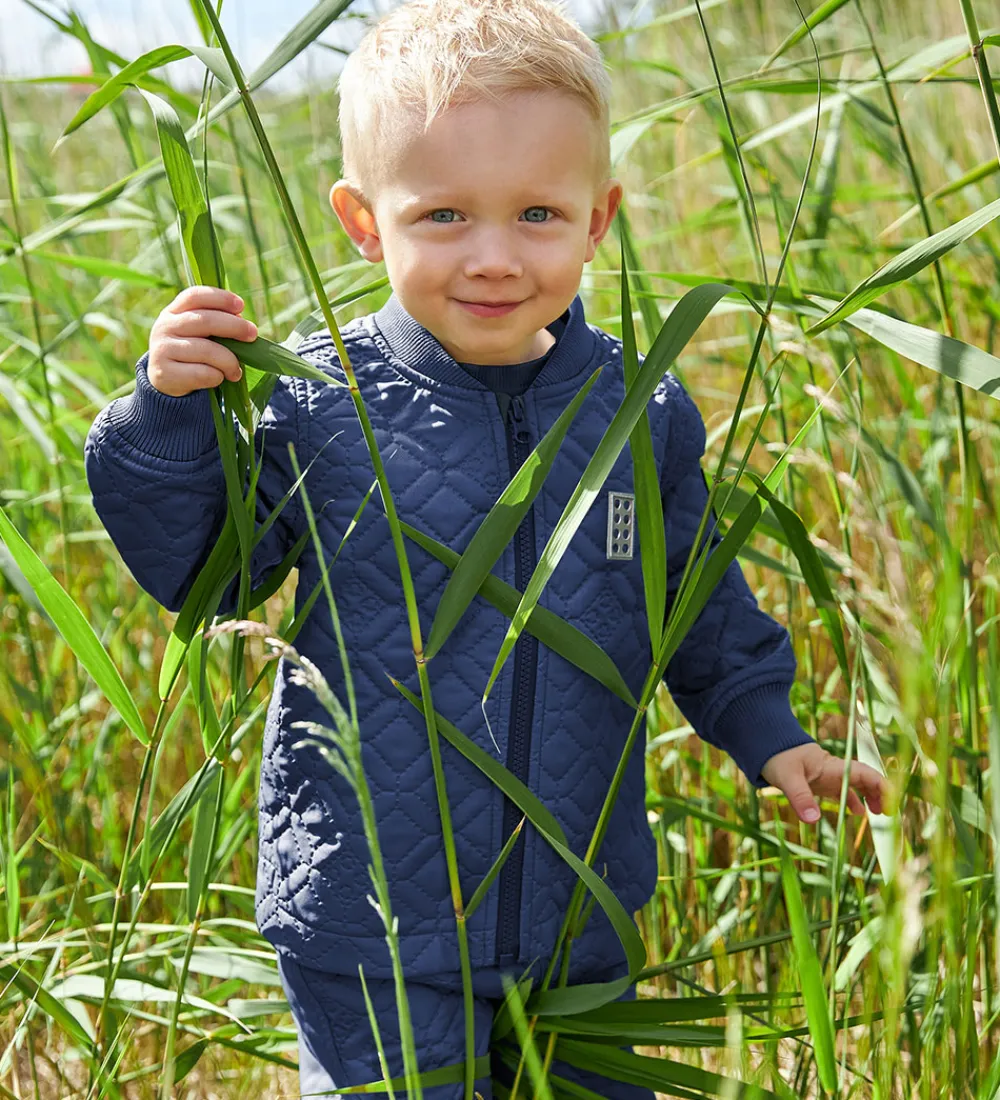 Fint LEGO® Wear termotøj i navy med en quiltet struktur og velplacerede logoreflekser.