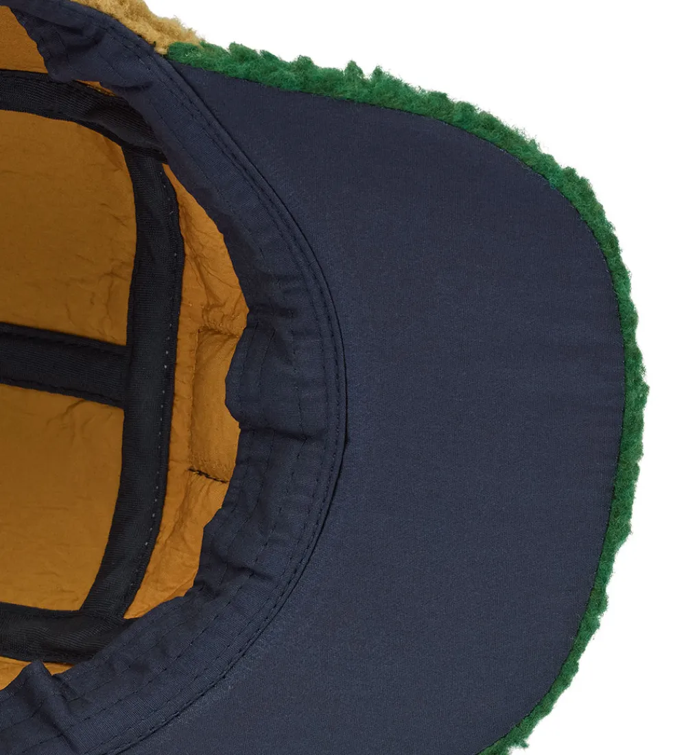 Smart Liewood kasket i flerfarvet fleece, og fortil sidder der et srt gummimærke.
