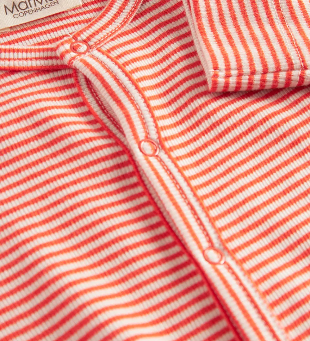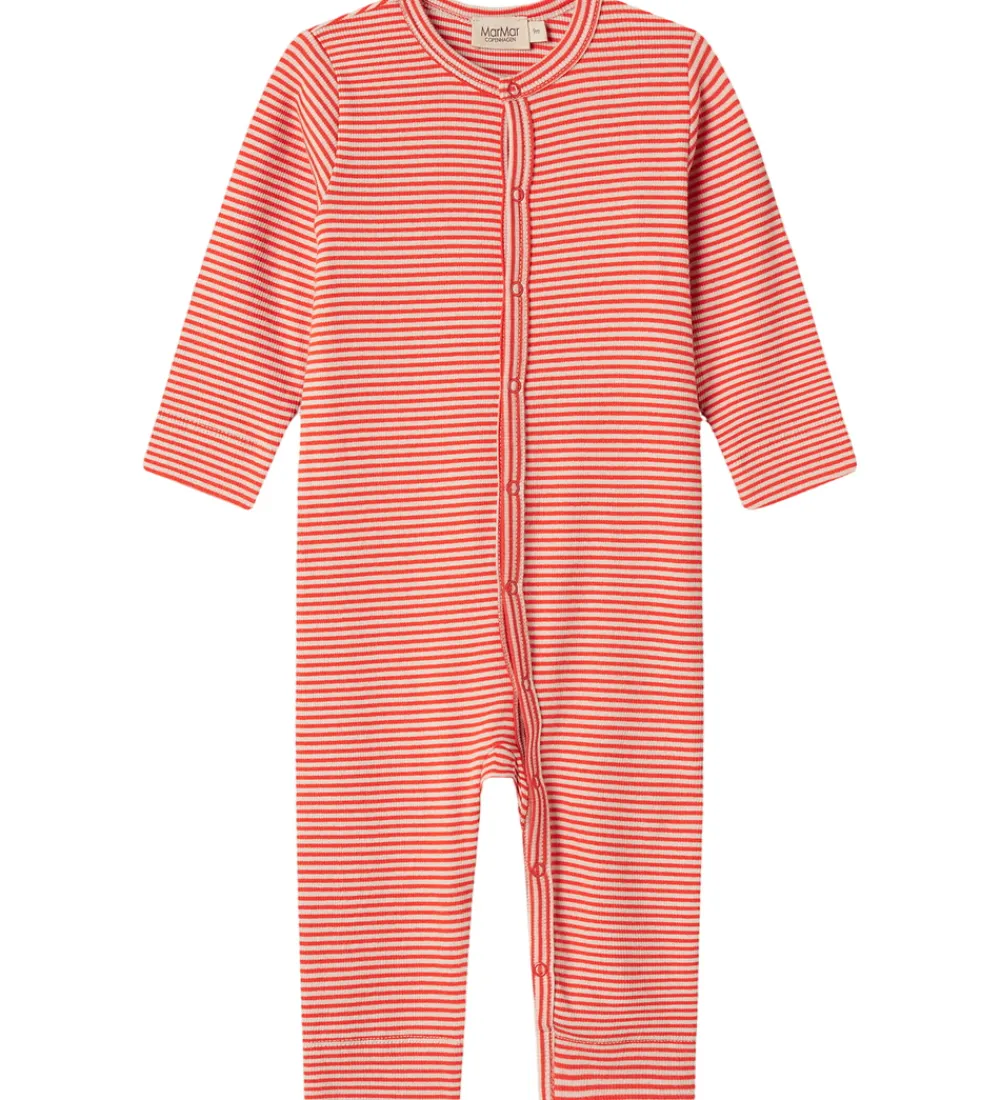 Charmerende MarMar heldragt med røde og hvide striber i et klassisk design. Den har en rund halsudskæring, som giver en enkel og stilren fremtoning.