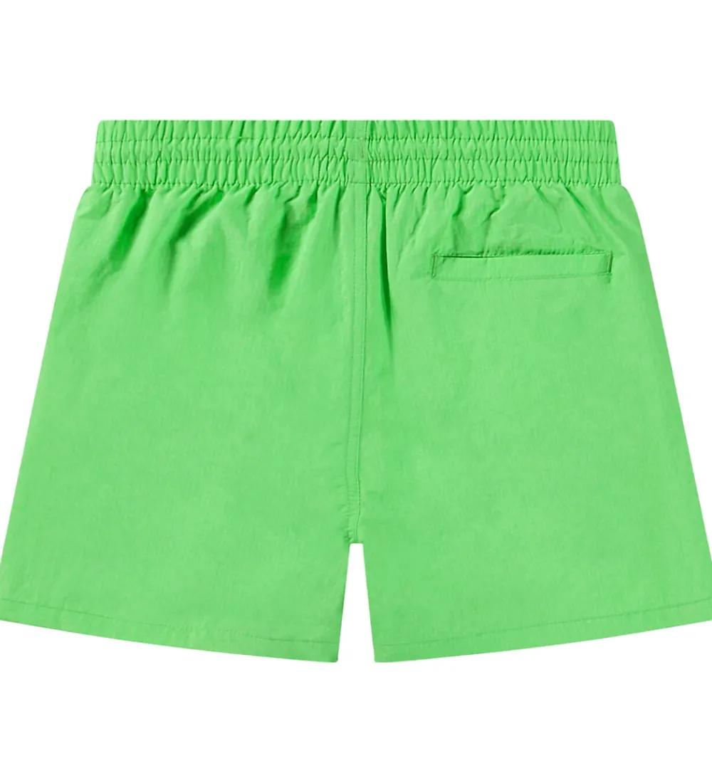 Farverige Molo badeshorts i neongrøn med et logo på venstre lår i neongul. Badeshortsene har en god elastik i taljen, som kan justeres med snøre. Bagpå er der en lomme i højre side. Indvendigt er der net med elastik i benåbningerne.