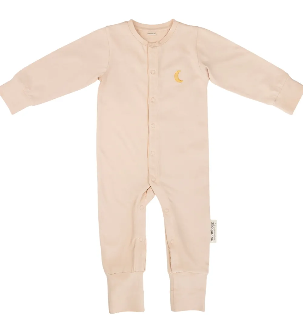Dejlig Moonboon natdragt med babyhjelm i lys rosa med en broderet halvmåne. Moonboon natdragten med babyhjelm leveres i en fin gaveæske.