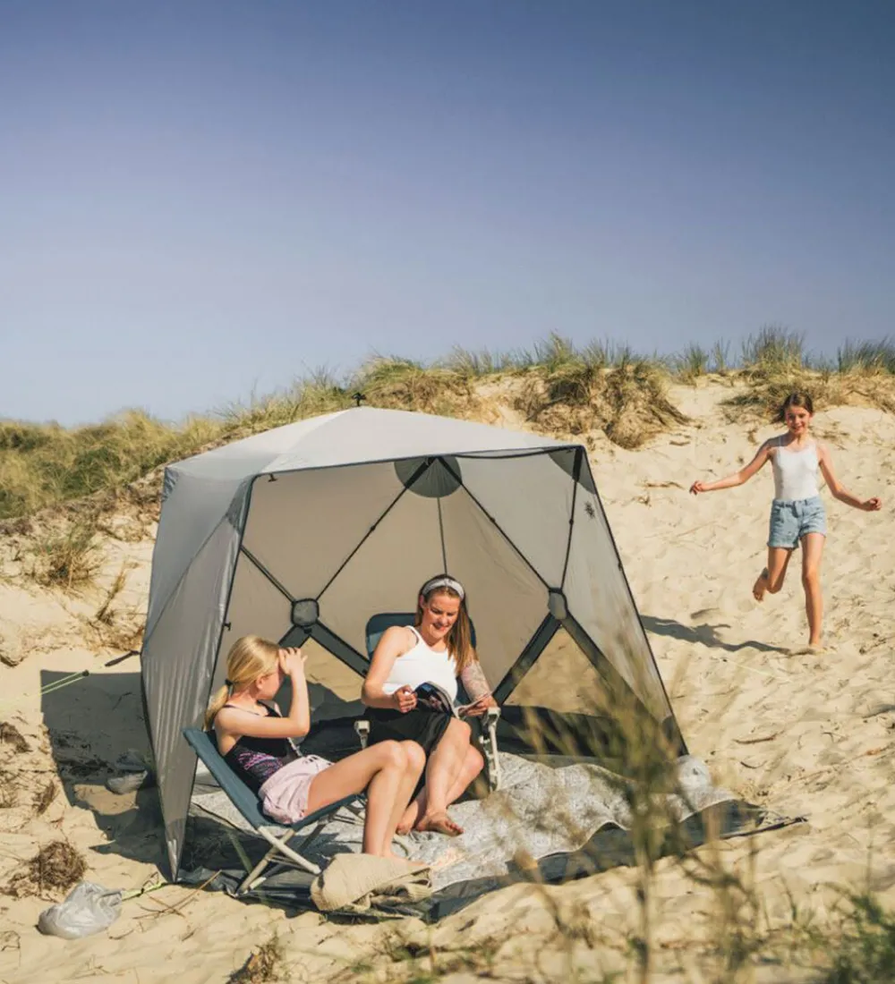 Outwell strandteltet beskytter mod sol, sand og vind. Strandteltets oversejl er lavet med outtex UV polyester og har praktiske meshlommer til småting. Strandteltet fastgøres ved hjælp af de medfølgende teltpløkker og har lommer, som kan fyldes med sand for ekstra stabilitet, samt har den en praktisk bund som også kan bruges som en dør for ekstra beskyttelse.