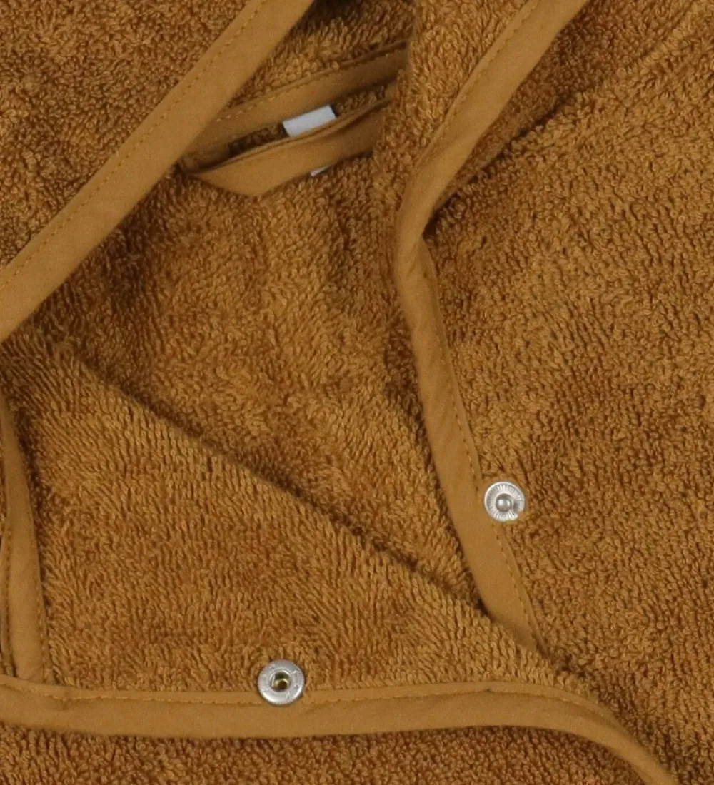 Pippi Baby badekåben har lange ærmer og bindes i livet med et bindebånd, der sidder fast i siderne. Badekåben er lavet i en lækker, økologisk bomuldsfrotté, som føles blød mod huden.