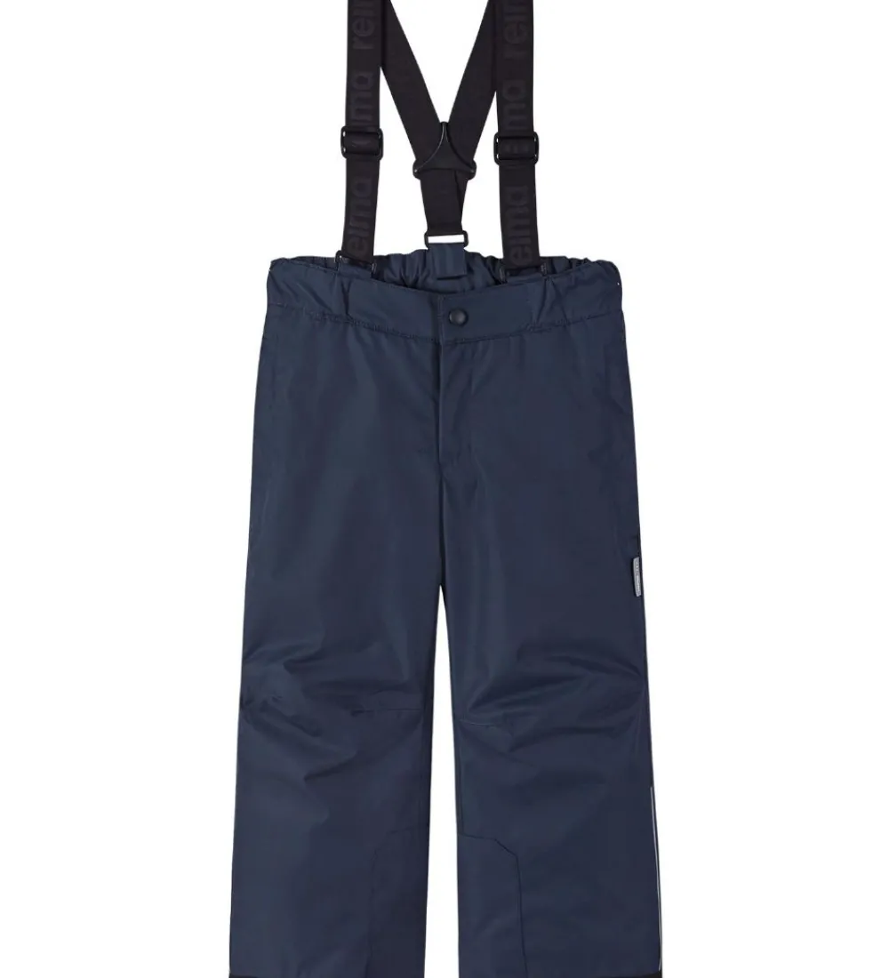 Reima skibukserne har justerbare, aftagelige seler, som fæstnes med velcro, og de samles på ryggen, så de sidder godt fast på skuldrene. I livet er der en bred elastik, og skibukserne åbnes fortil med en tryknap og en lynlås. I siderne er der praktiske lommer, som lukkes med en skjult lynlås.