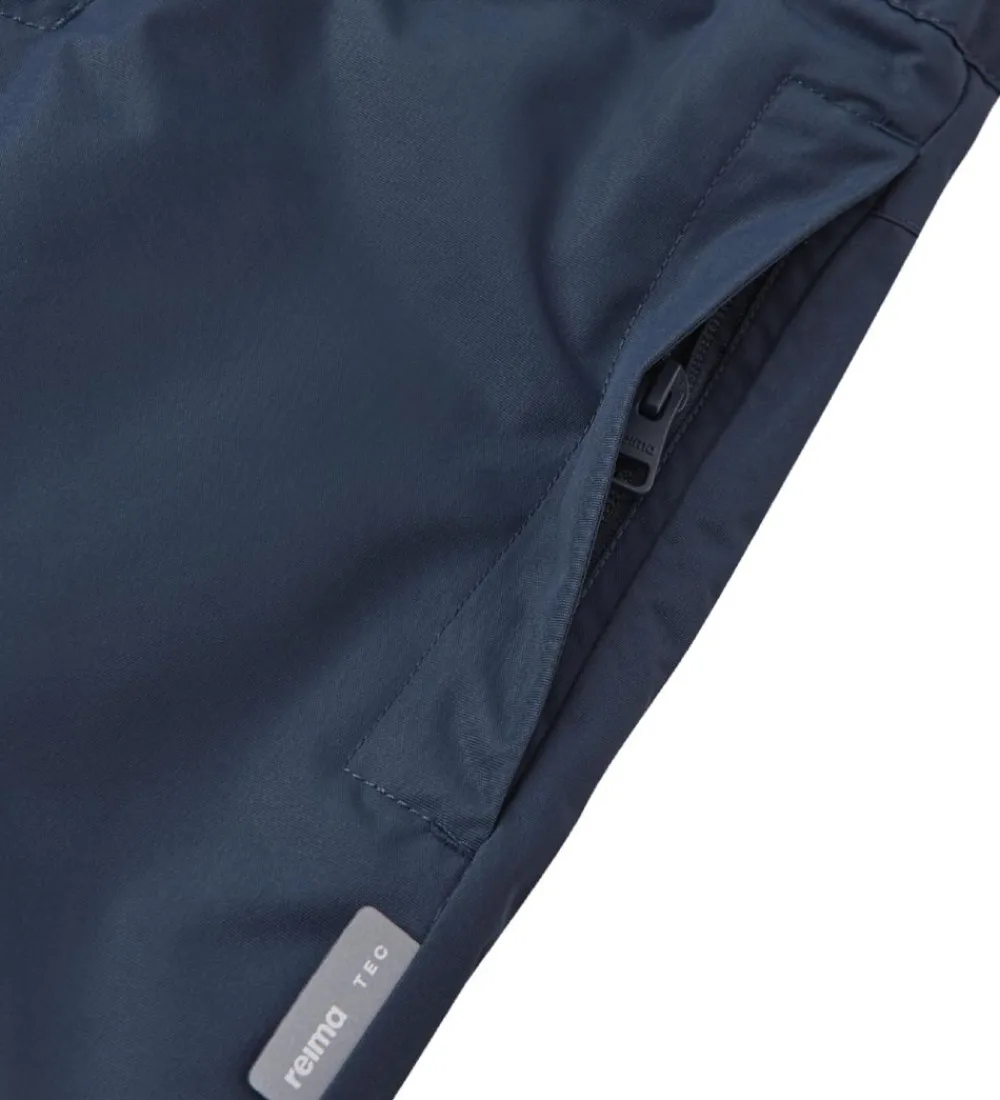 Reima skibukserne har forstærkninger på buksebenene, og der er praktiske snefang med en smal elastikkant med gummibelægning på indersiden. Det yderste lag af buksebenet kan fæstnes til snefanget med en trykknap, så det ikke glider op. Nederst langs siderne af buksebenene er der smalle refleksstriber.